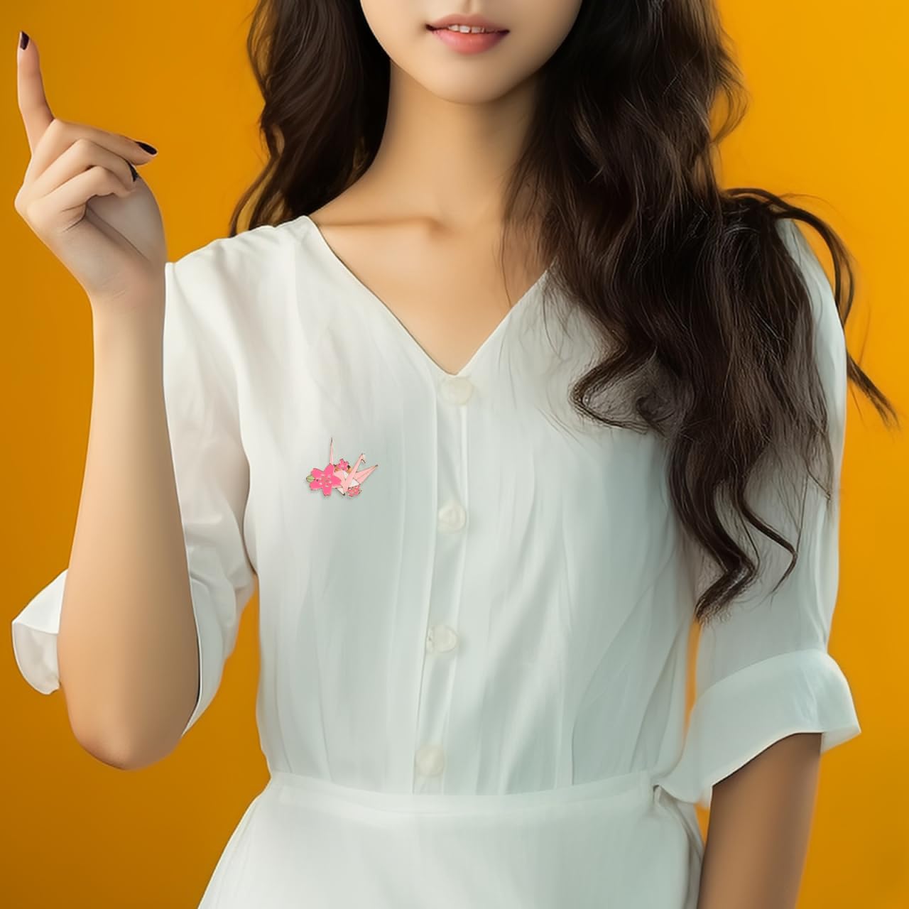 | ペンダントの説明: | 折り鶴と桜のブローチ、長寿・幸せ・吉祥を象徴する |