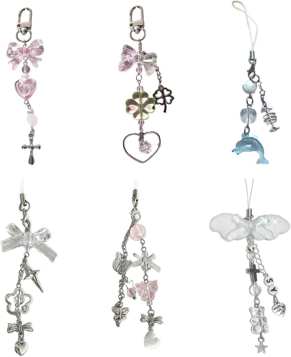 ファッショナブルなビーズキーチェーンアクリルアロイ電話チャームエレガントバッグペンダントギフトファッションアイキャッチキーリングジュエリー