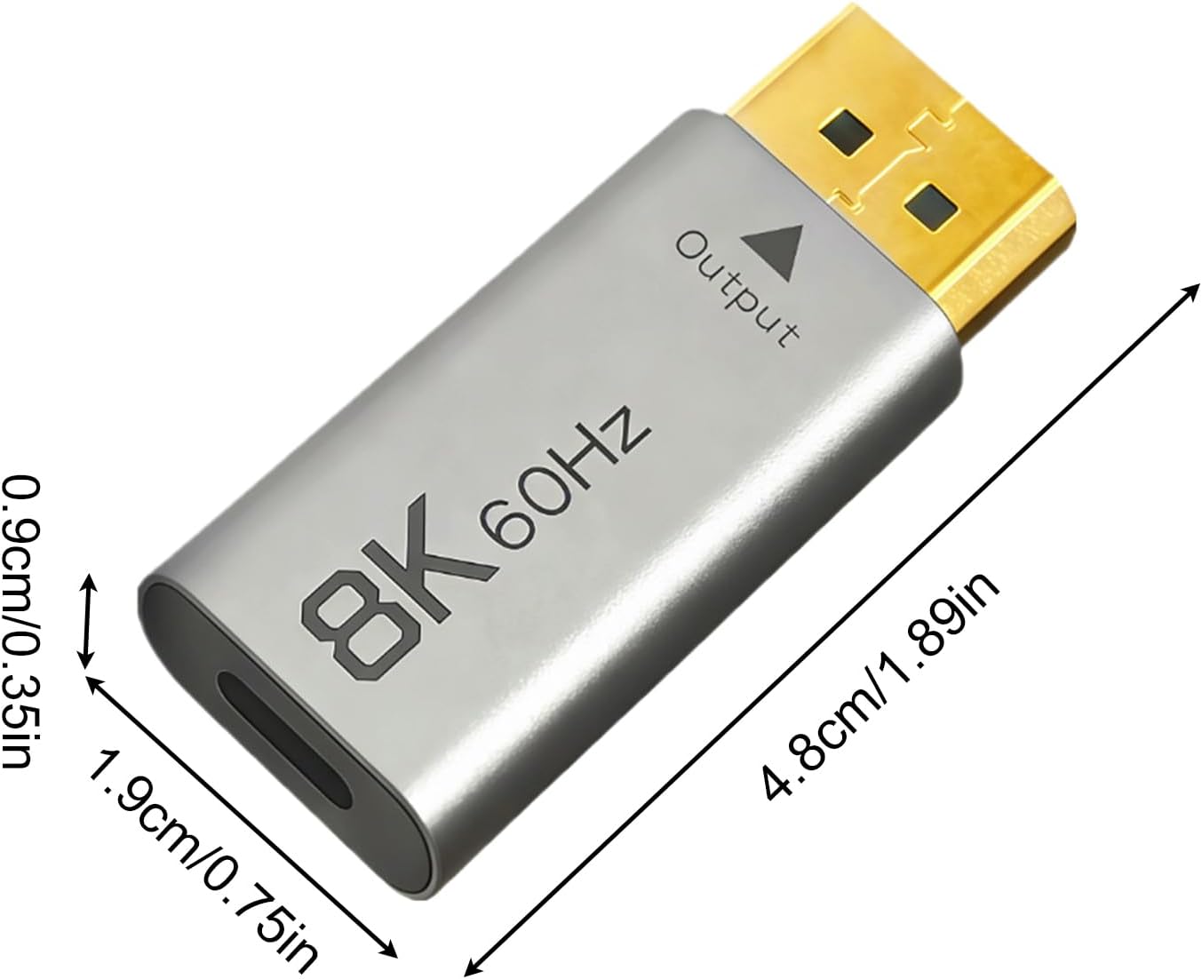 この Type-C メス - DP オス アルミニウム合金アダプターの仕様は、市場の主流の Type-C - DP1.4 製品規格に準拠しています。