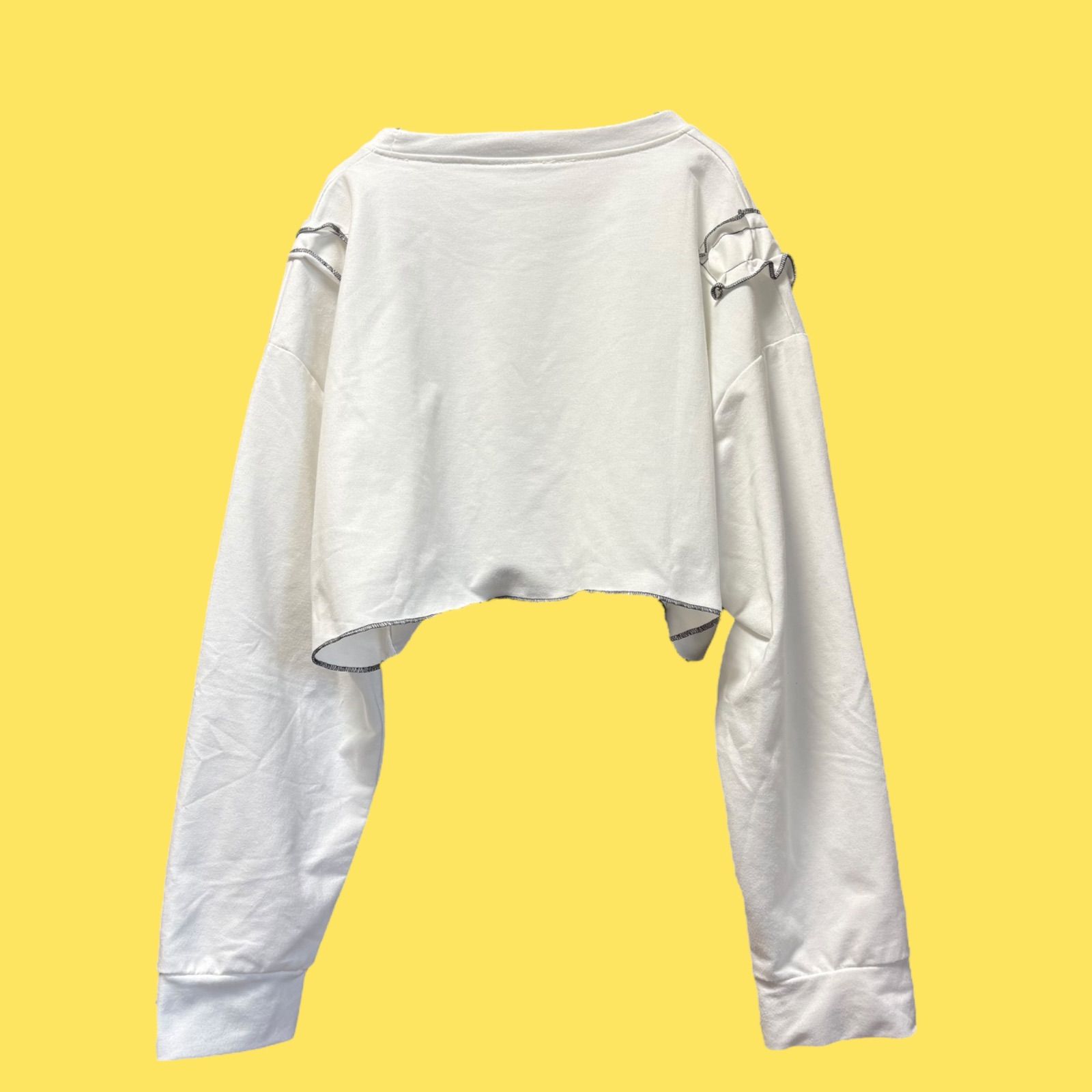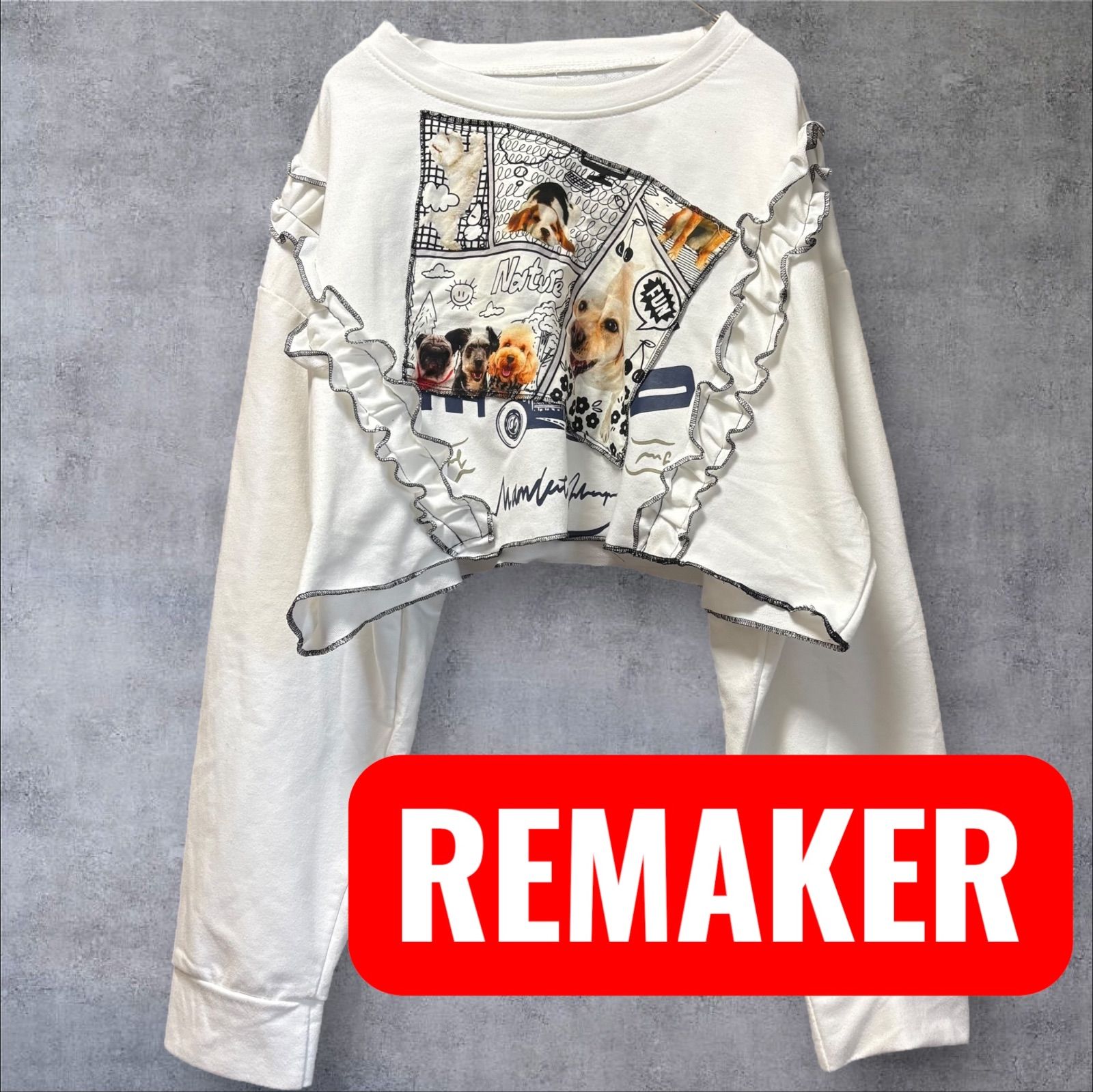アウトレットセール✨L✨短いトップス 重ね着ショート丈✨古着リメイク 犬プリント フリル Tシャツ長袖ロンT 再リメイク品のためアウトレット クーポンあり 【商品情報】 ■ ベース:古着 長袖 ■ サイズ(レディースL) ・着丈:約38cm ・肩幅:約54cm ・身幅:約55cm ・袖丈 約50cm 【商品説明】 カラー ホワイト 長袖・中厚手のロンT(犬プリント) ・犬イラストプリント ・ベリーショート丈【お腹見え】 ・フリル市う蝕 ・ダメージ系Tシャツです。 【ご注意】 ・古着を使用したリメイク商品のため、ダメージや風合いがあります。 ・リメイクやユーズド感にご理解のある方におすすめします。 ・完璧な状態をお求めの方はご遠慮ください。 #REMAKER★古着リメイク★ショップスに移転 古着リメイク トップスリメイク フリル ロングTシャツ 薄手トレーナー系 リメイクファッション ショート丈