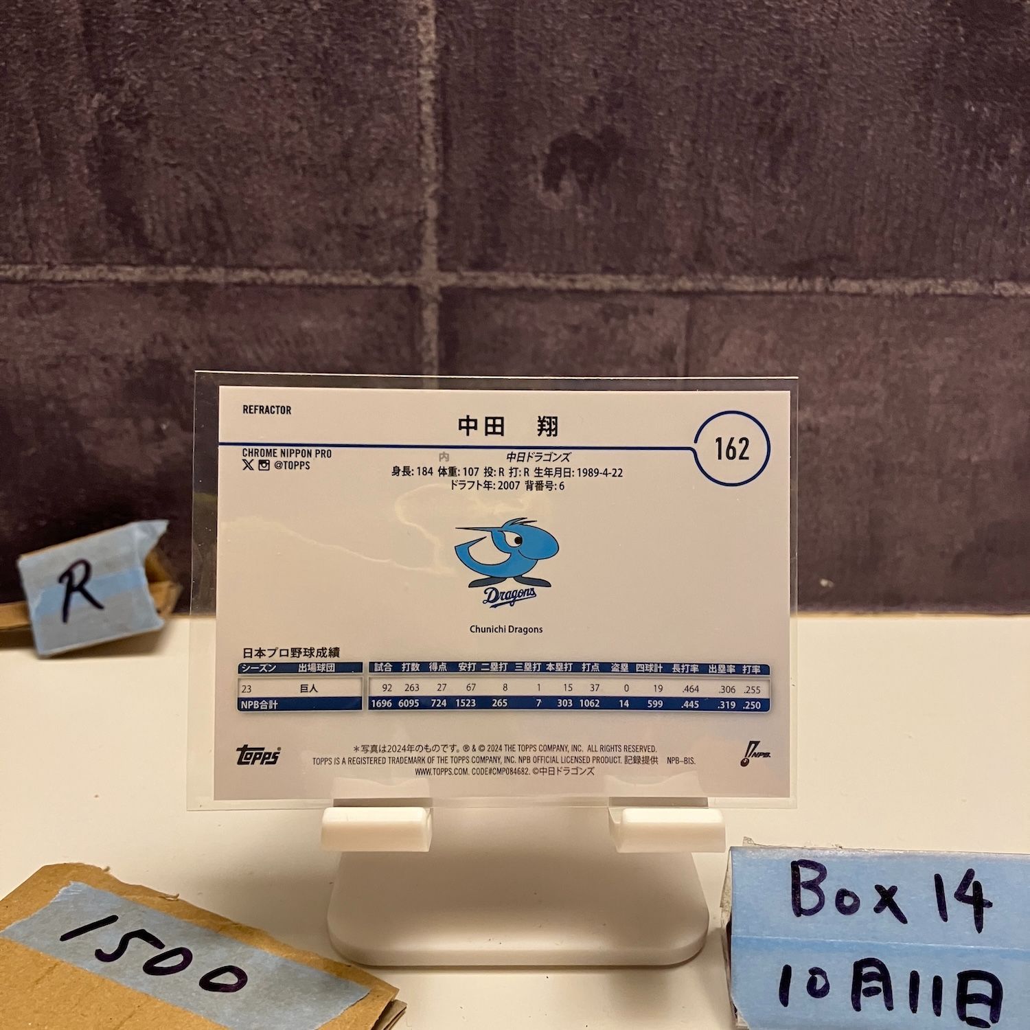 2024 Topps Chrome NPB 中田翔 Sho Nakata 40/50 中日ドラゴンズ Shimmer Refractor カード