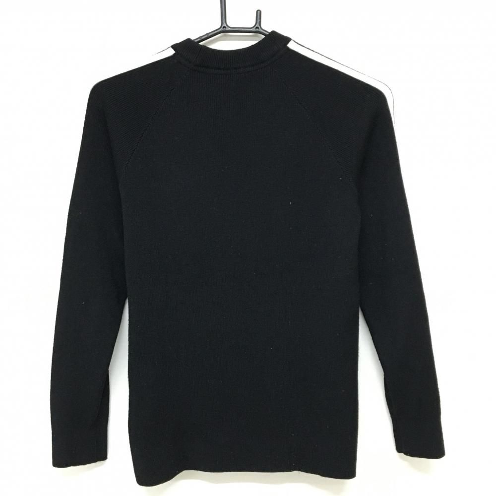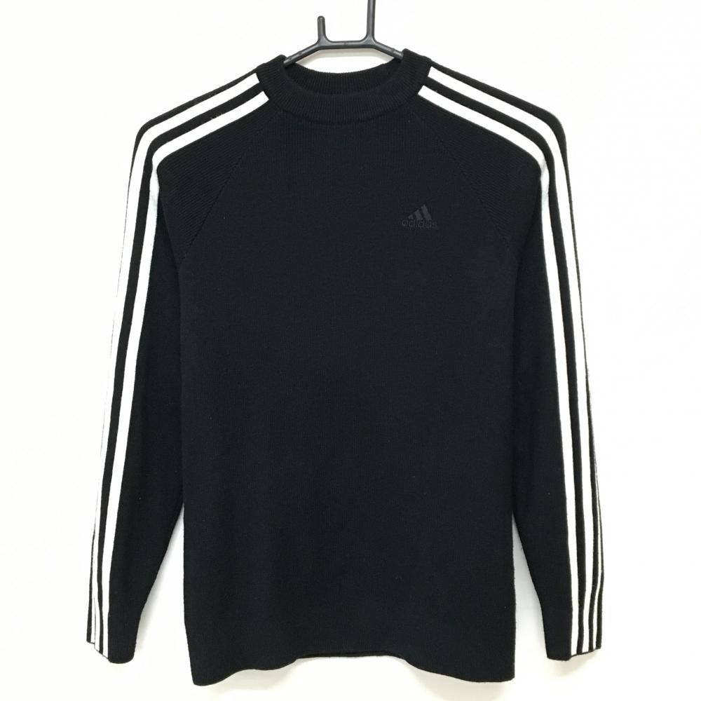 アディダス セーター 黒×白 袖3ストライプス ウール混 ニット レディース M ゴルフウェア adidas