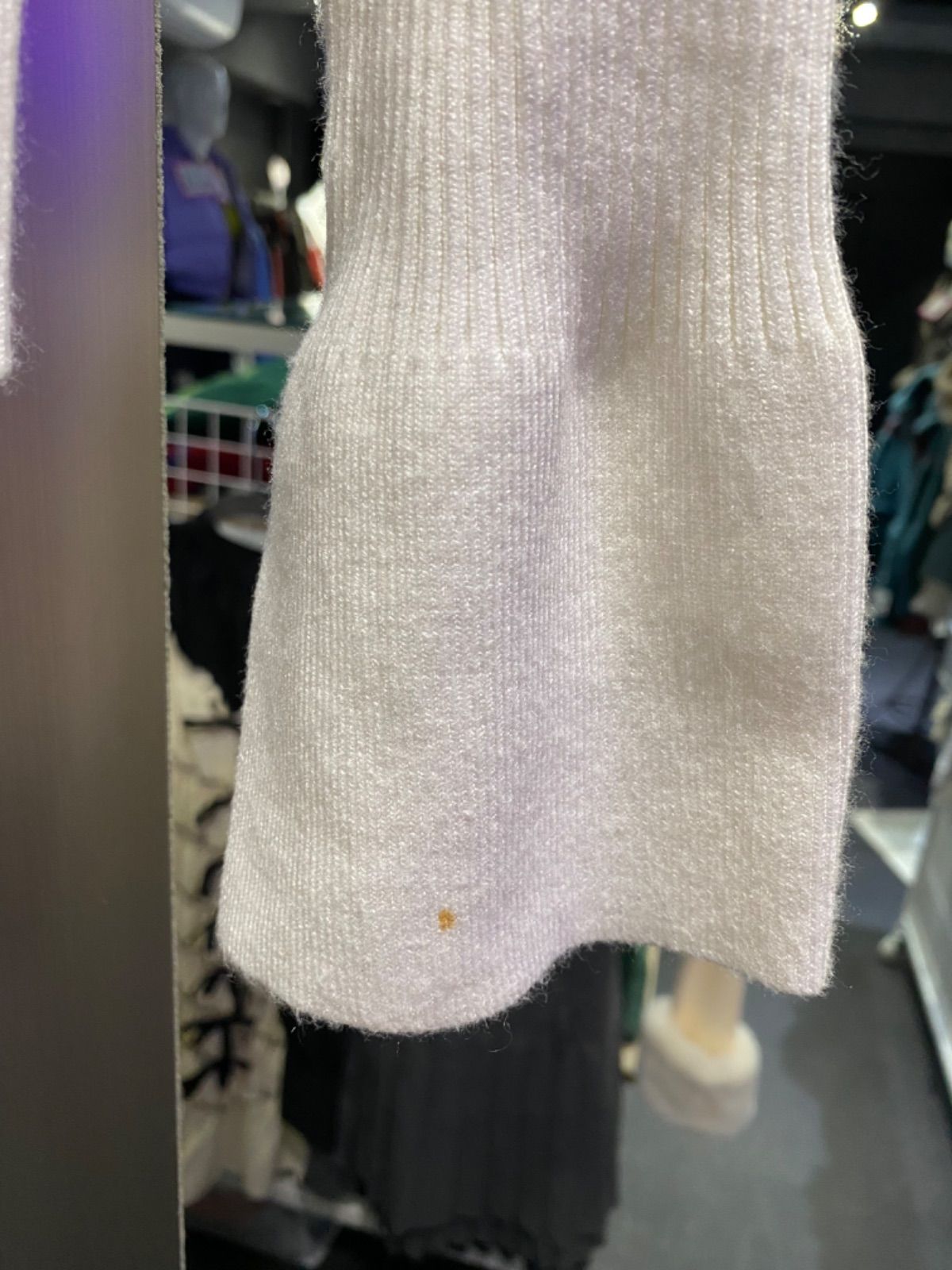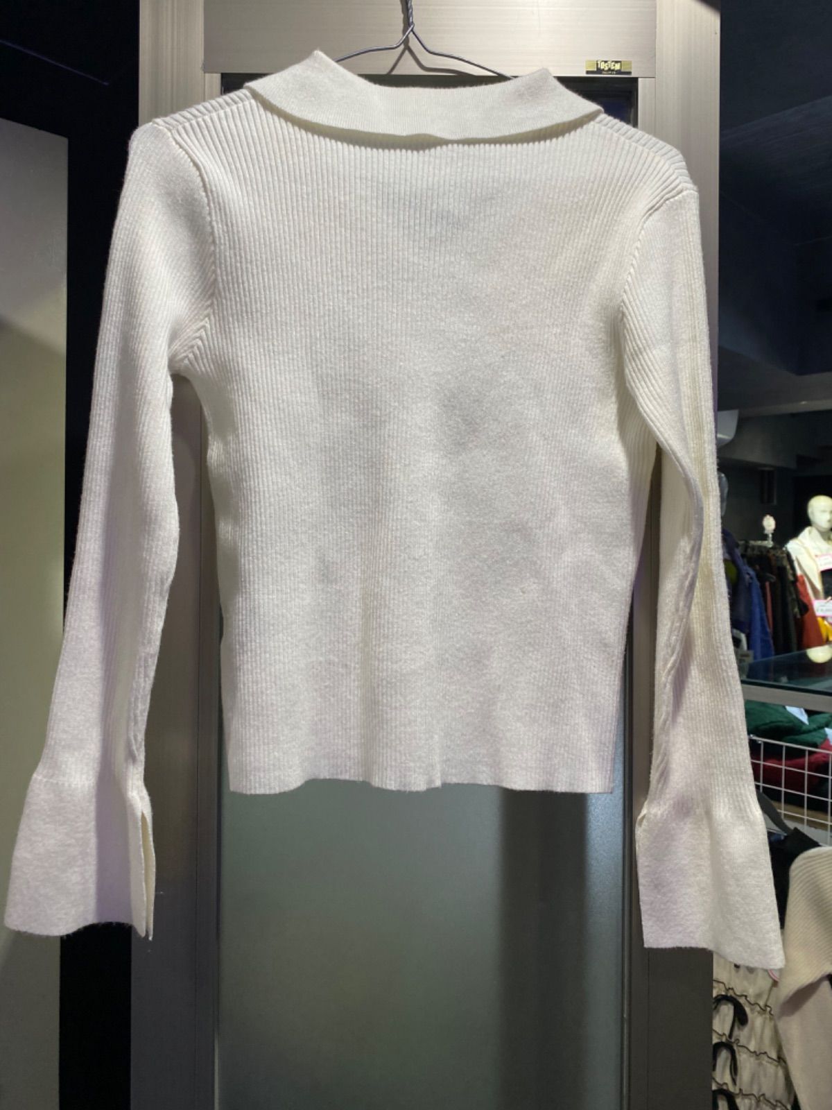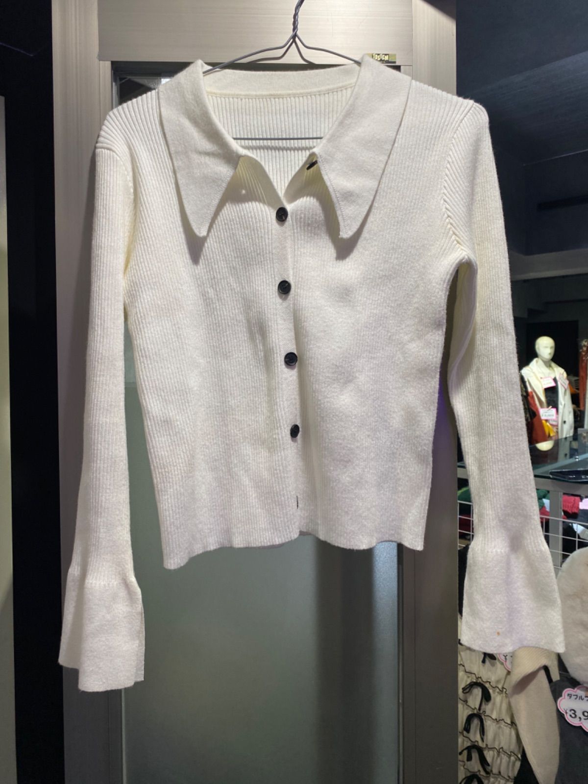 DAZYの白のカーディガンニットです。 Mサイズです。 一部に小さなシミが数箇所見られます。(写真3.4枚目参照) それ以外は比較的綺麗な状態です。 写真のご確認の上ご理解頂ける方のみご購入宜しくお願い致します。