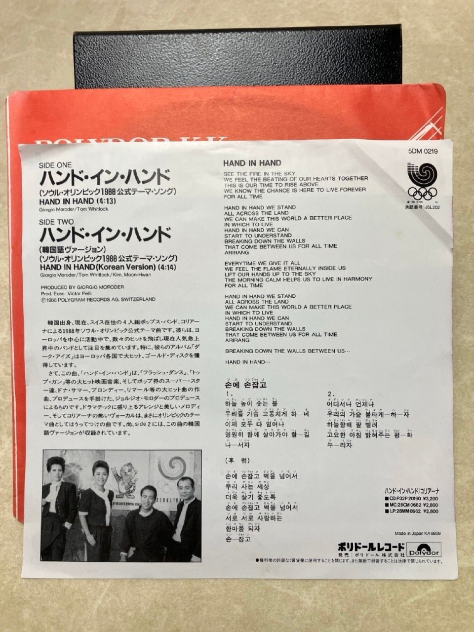 EP ソウル・オリンピック 1988 公式テーマソング コリアーナ ハンド・イン・ハンド GIORGIO MORODER KORREANA 7インチ 5DM0219