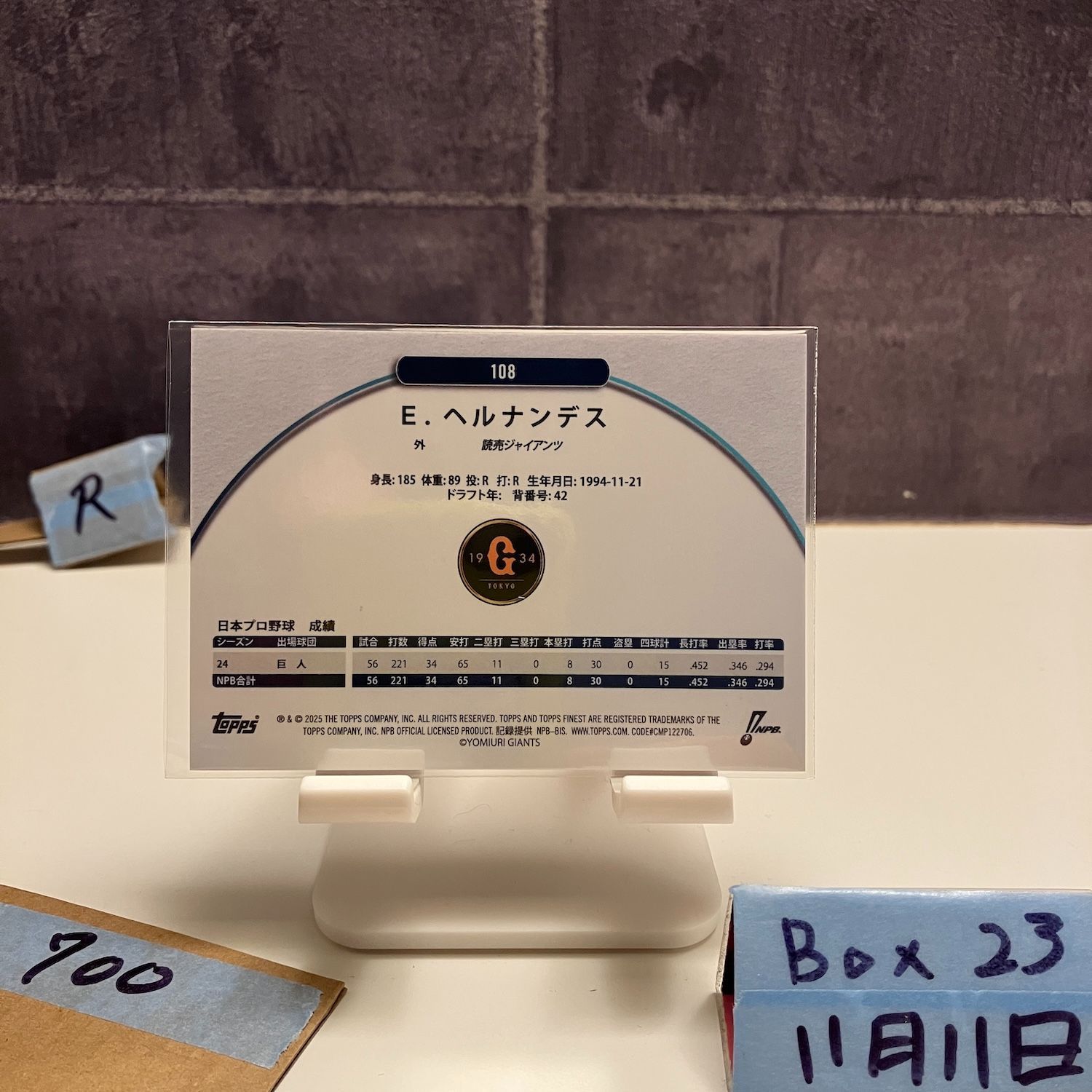 2025 Topps Finest Elier Hernandez 191/250 Yomiuri Giants Purple Refractor