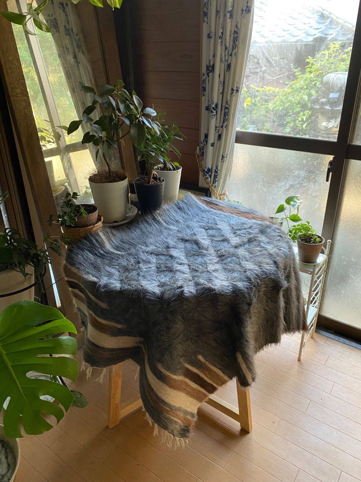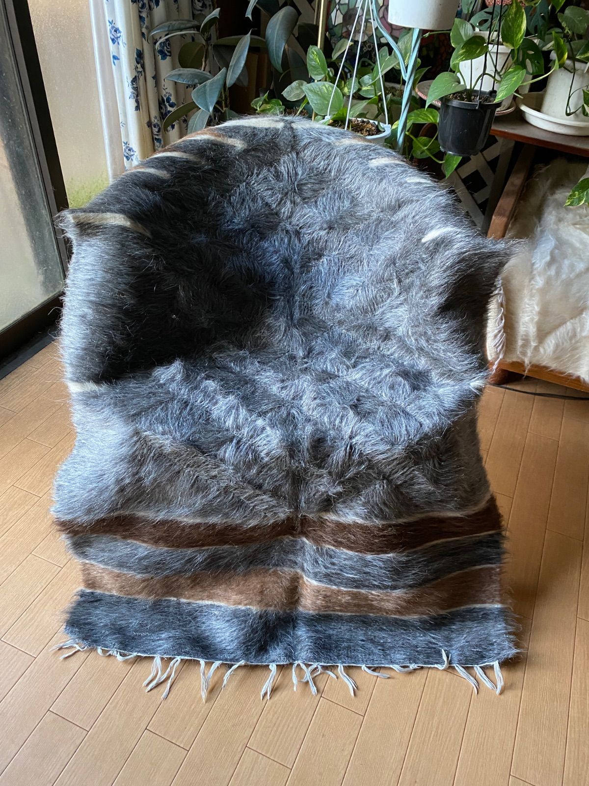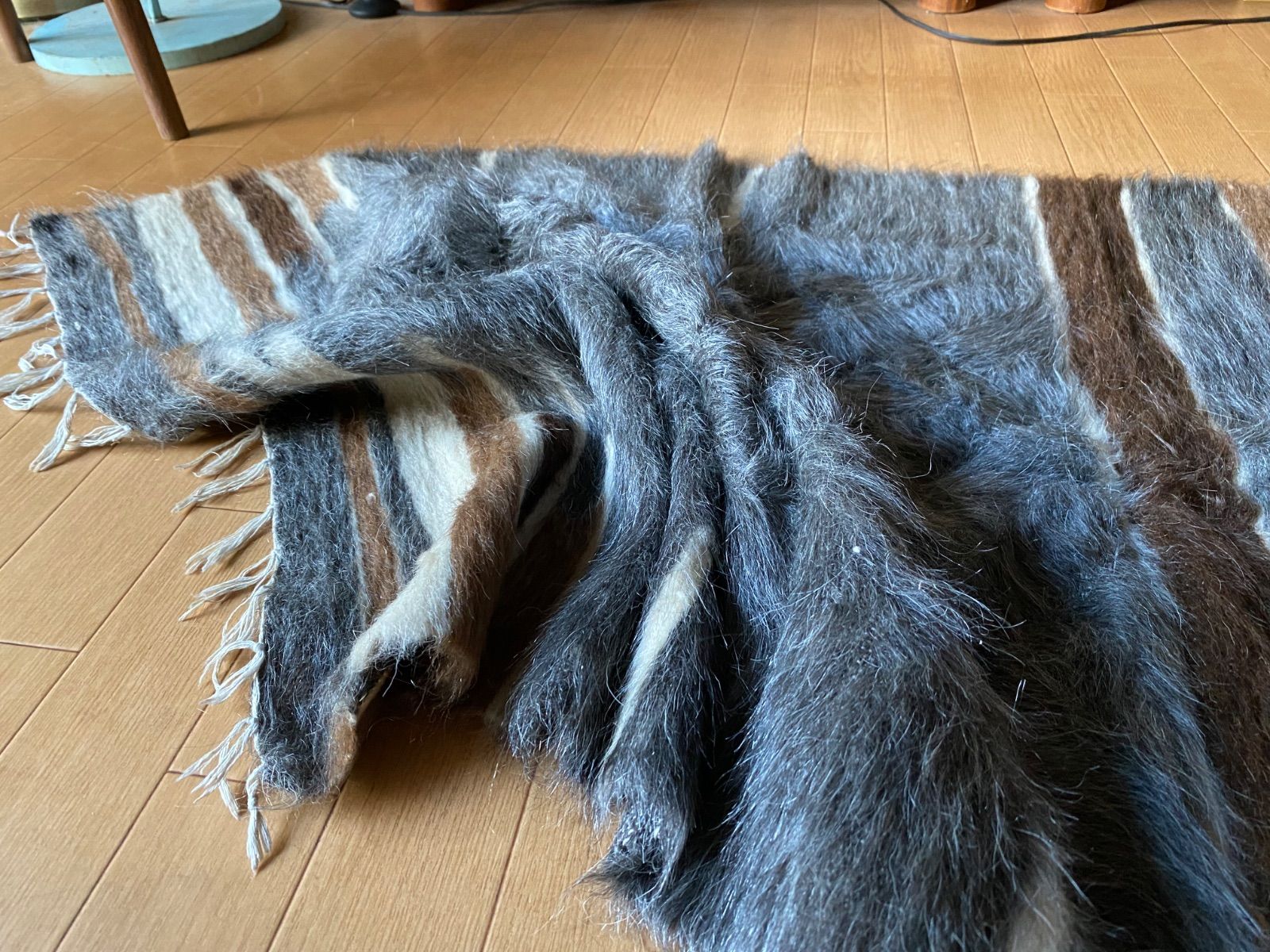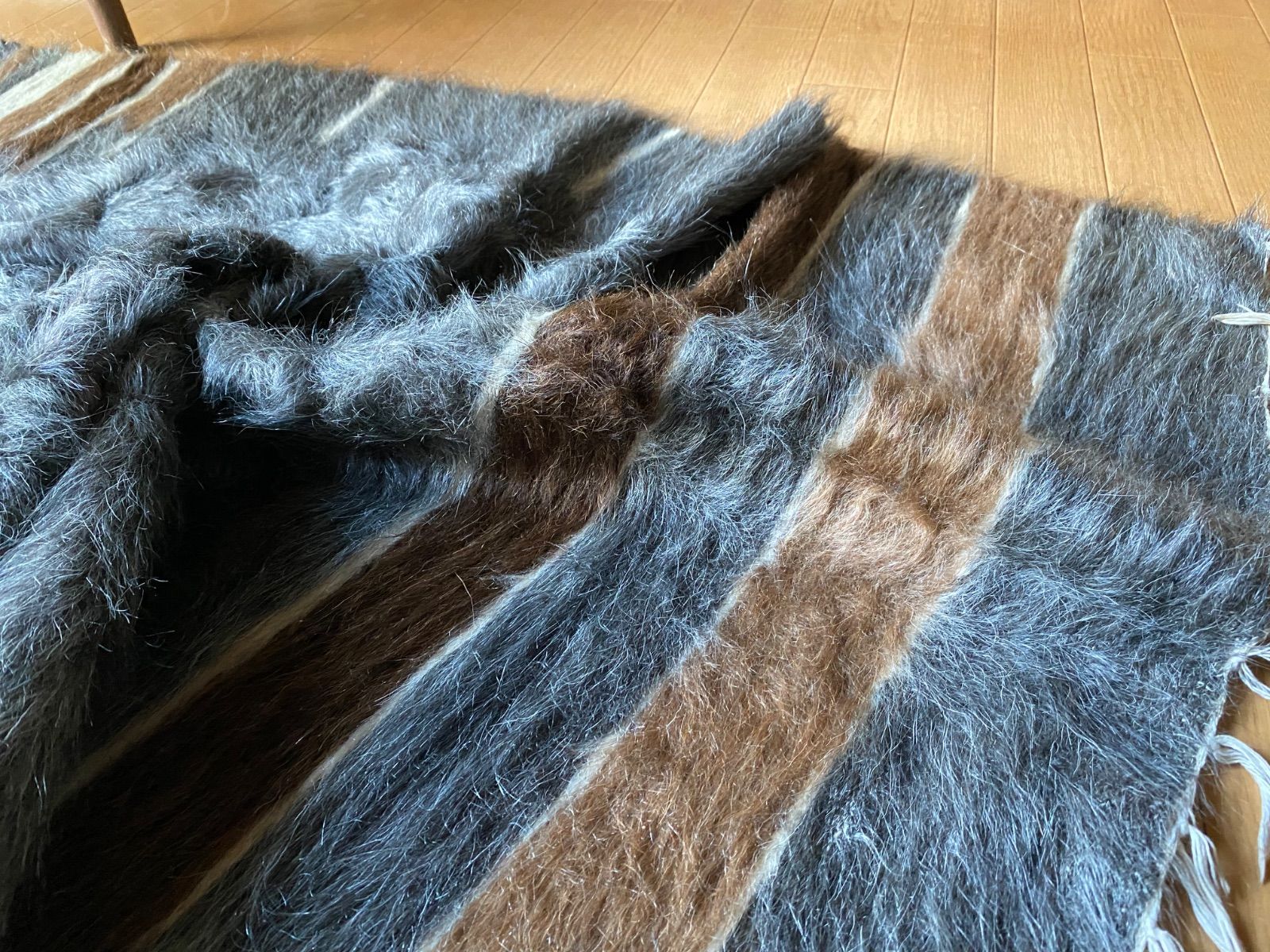 アンゴラヤギのモヘアで織られたほぼ新品未使用ですが、40年ほど織られたもので今織られたものよりさらに密でモヘアの質が大変良いです。新古品になります。