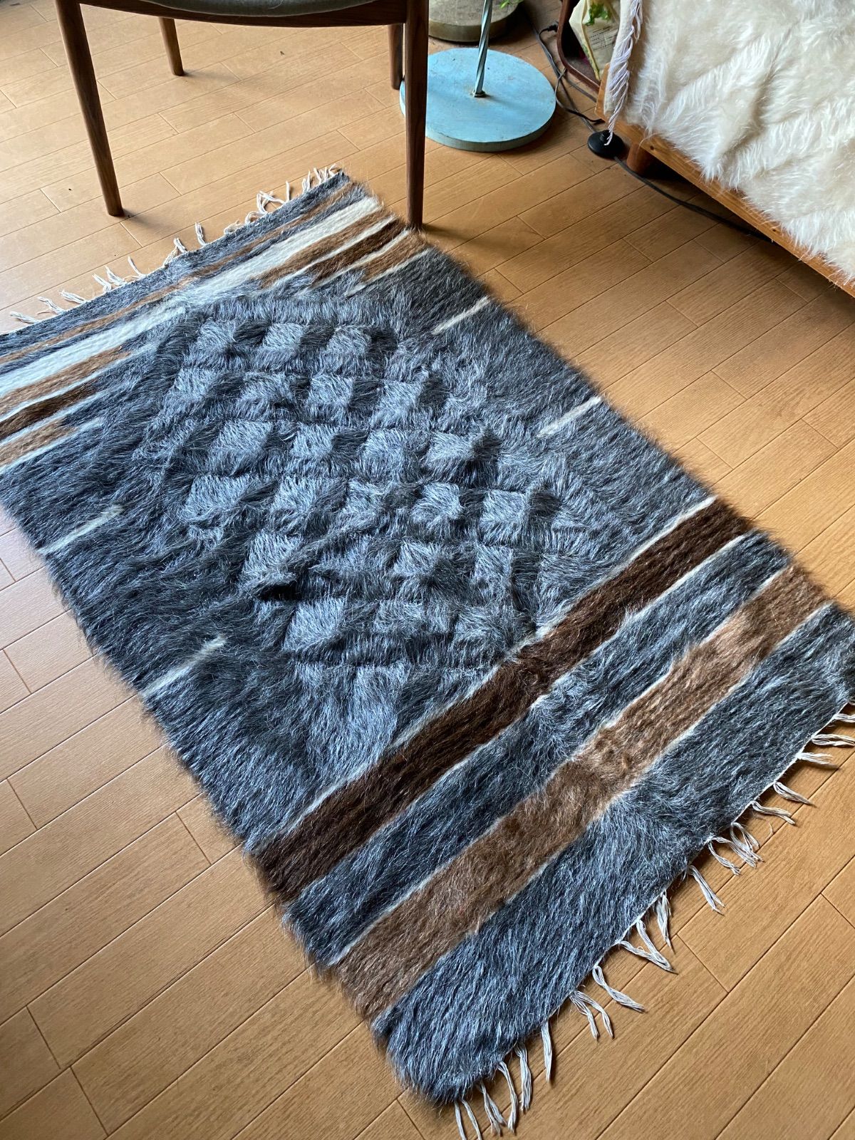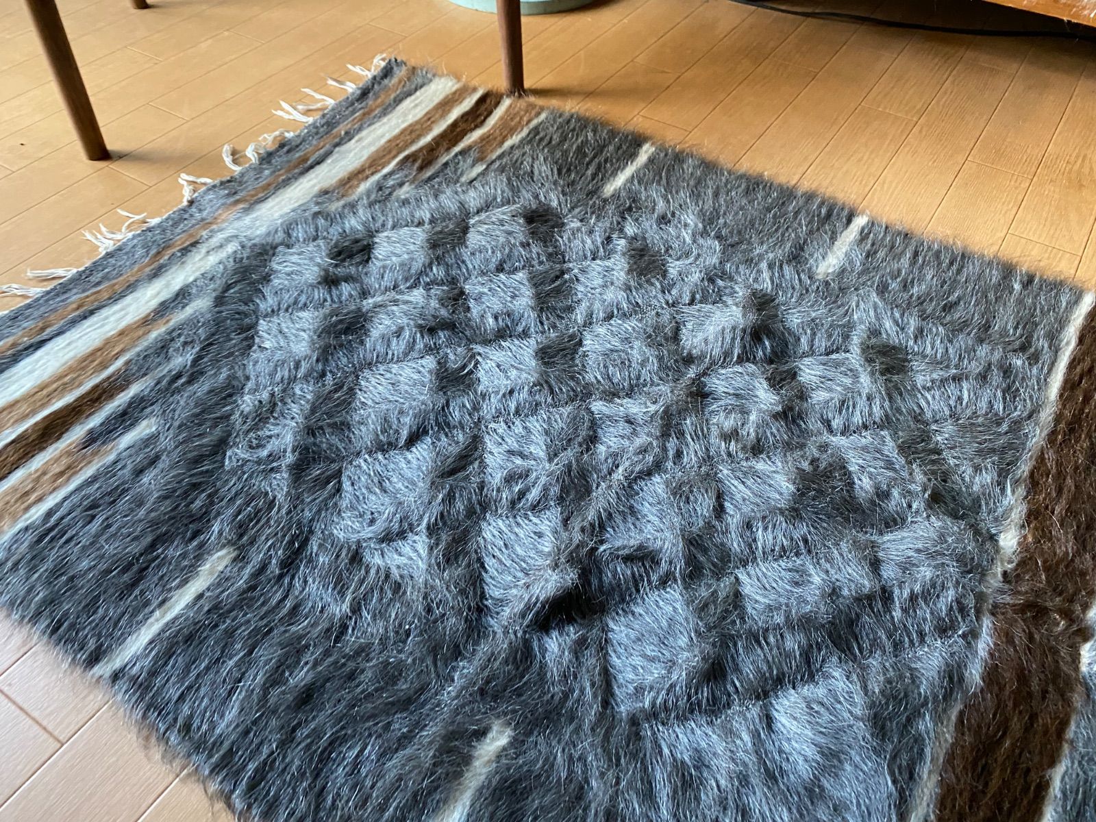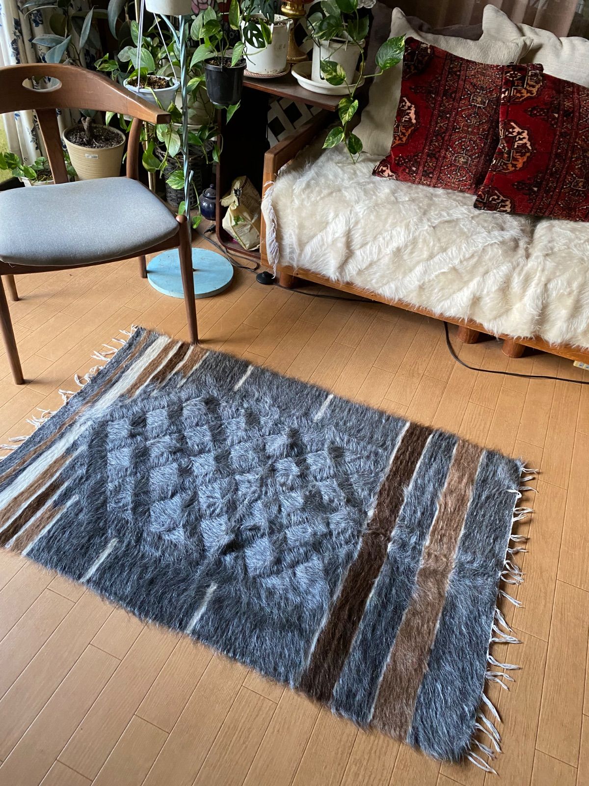 冬は毛がある面で、夏は裏面でキリムとしてお使いいただける優れものです。