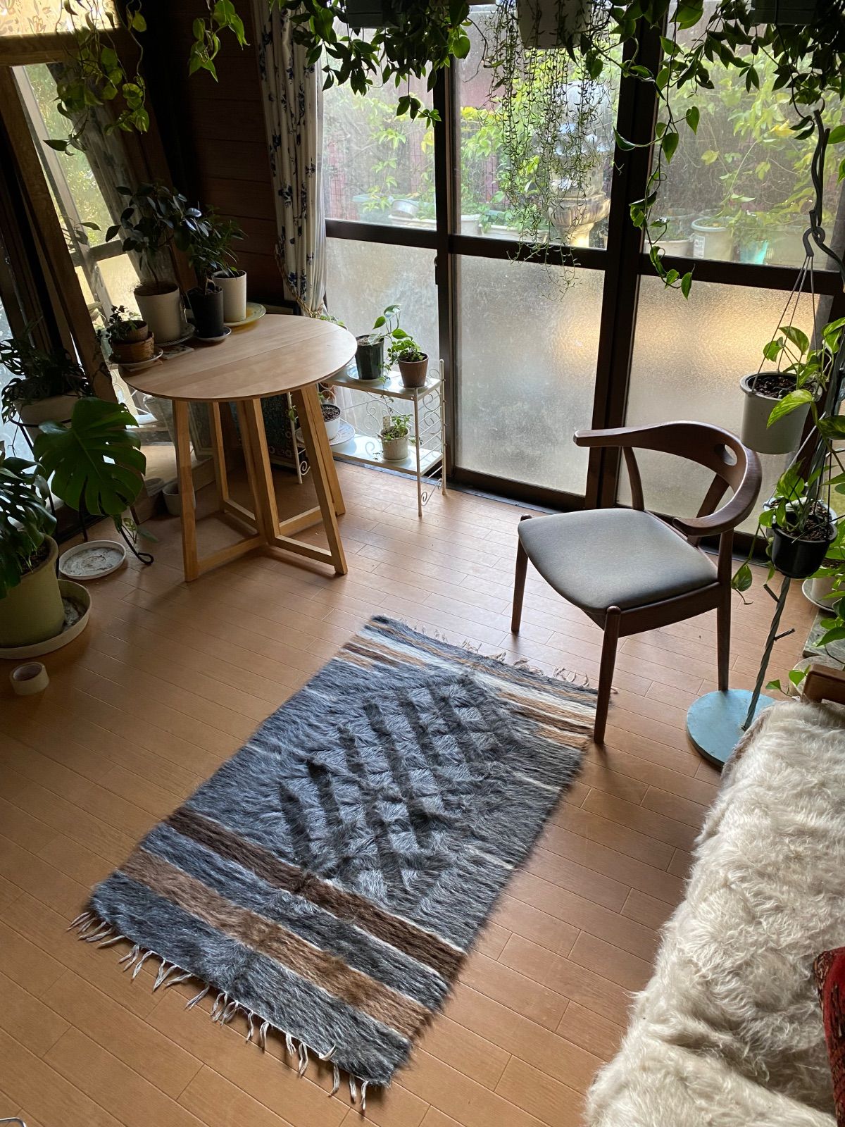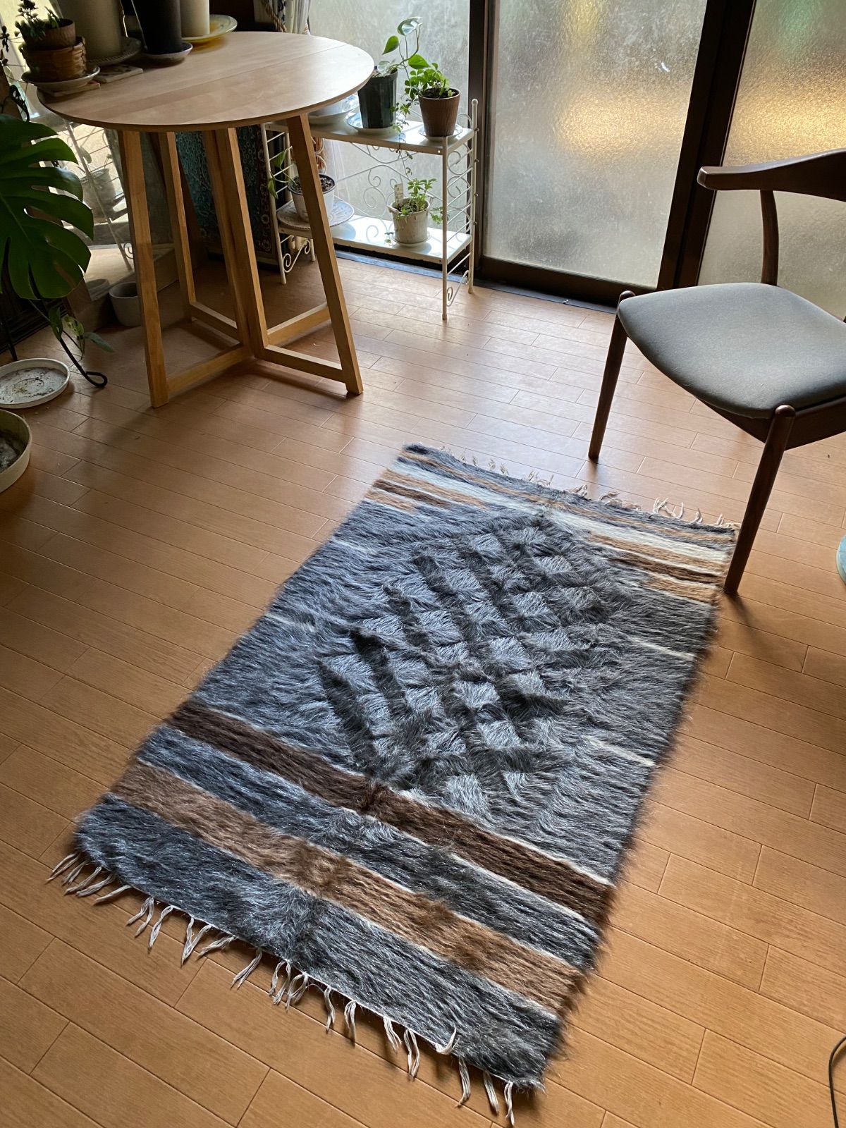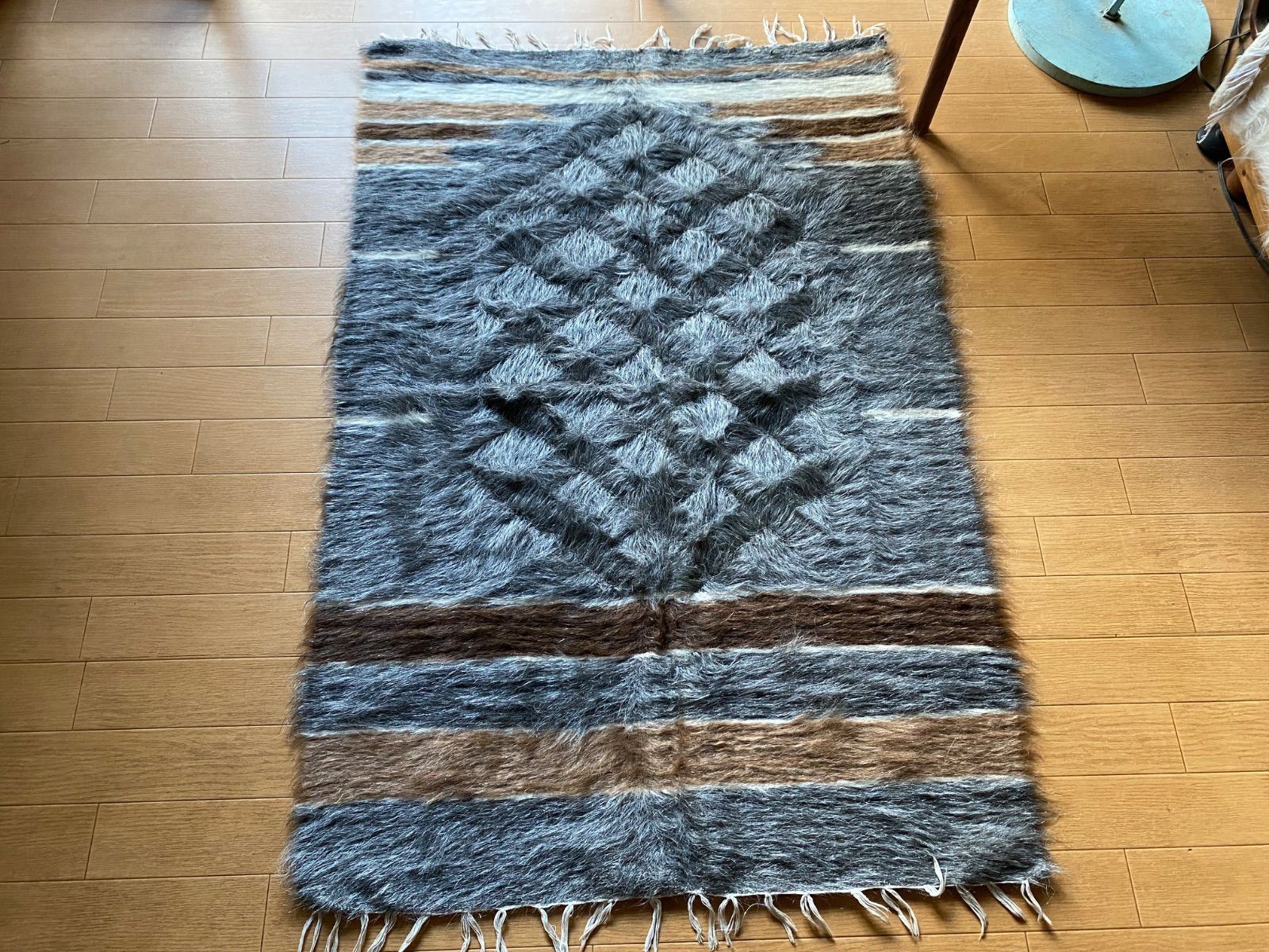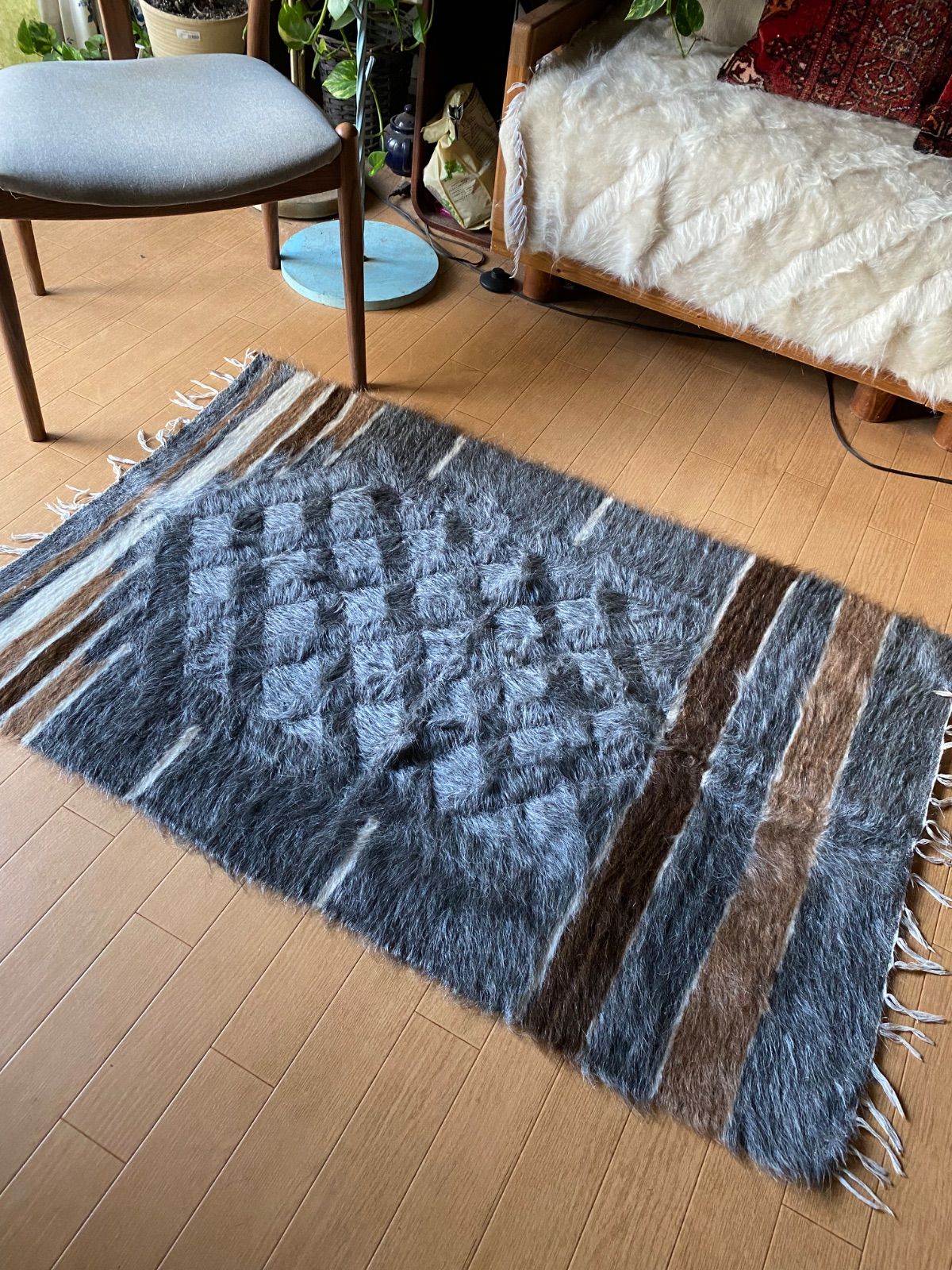 冬は毛がある面で、夏は裏面でキリムとしてお使いいただける優れものです。