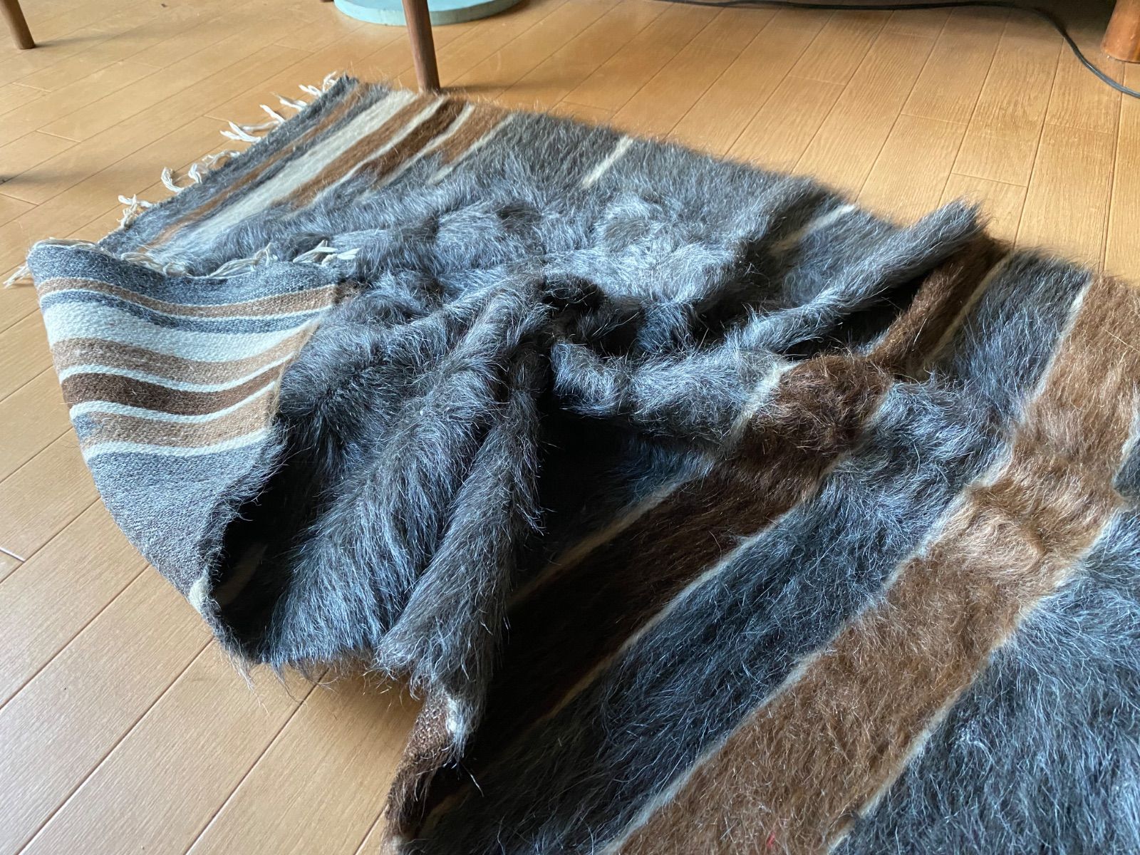 自然の山羊の毛を手で紡いだものが使われていますので、たまーにもみ殻がたまについていたり木の破片みたいなものが稀に織り込まれていることがありますので、ご了承ください。 できるだけ検品して取り除いていますが取り切れないこともありますのでご了承ください。