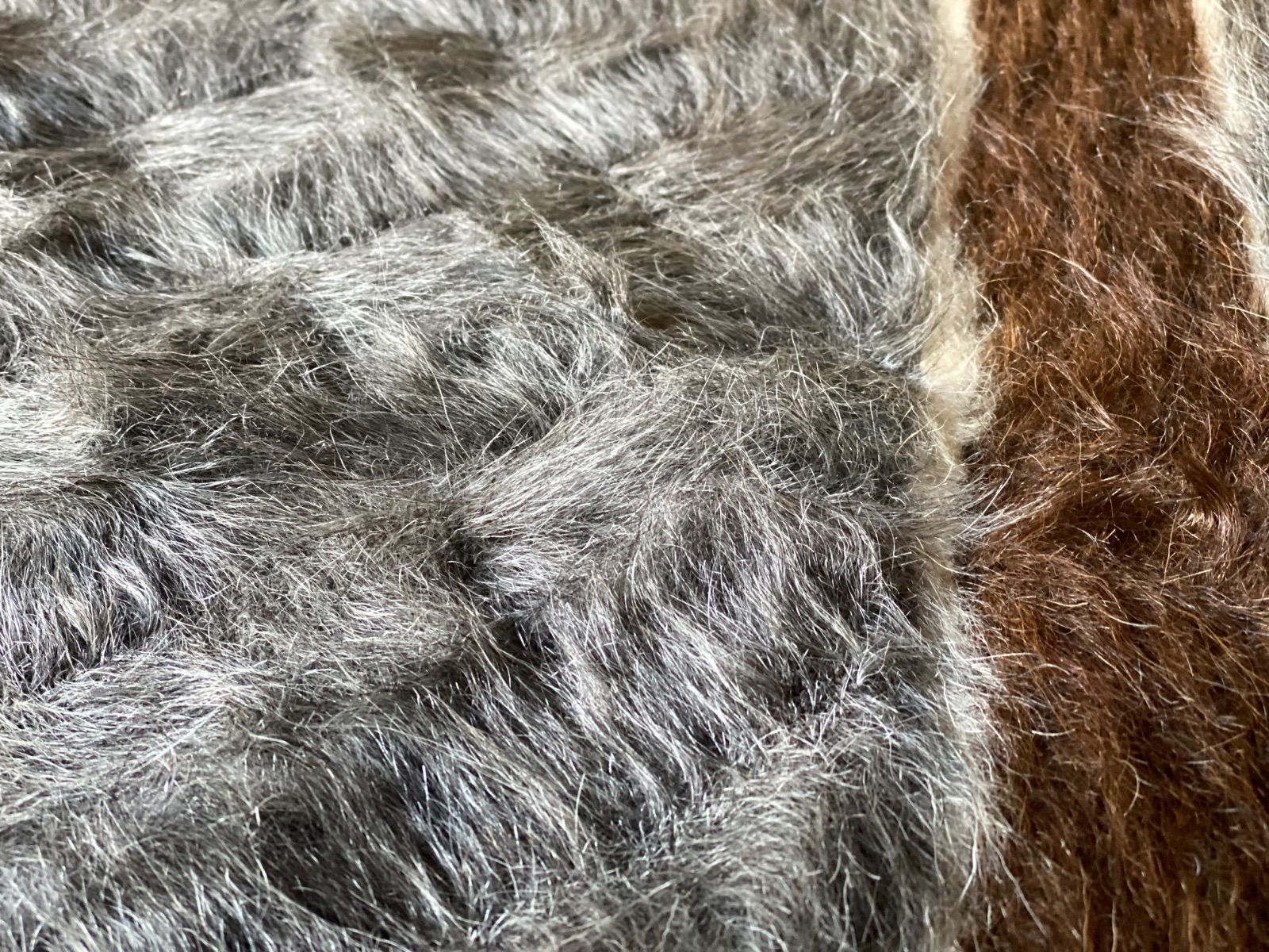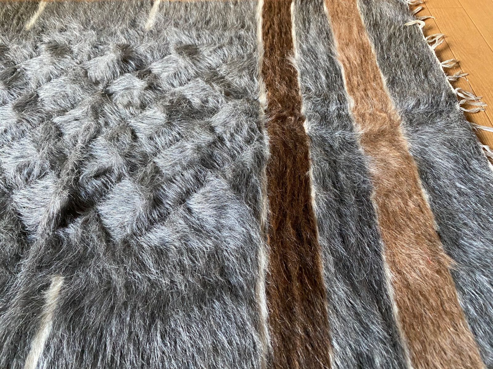こちら通常の新しいシイルトバッタ二エにくらべ、毛量が多めの素晴らしいアンゴラ山羊100%のシイルトです!