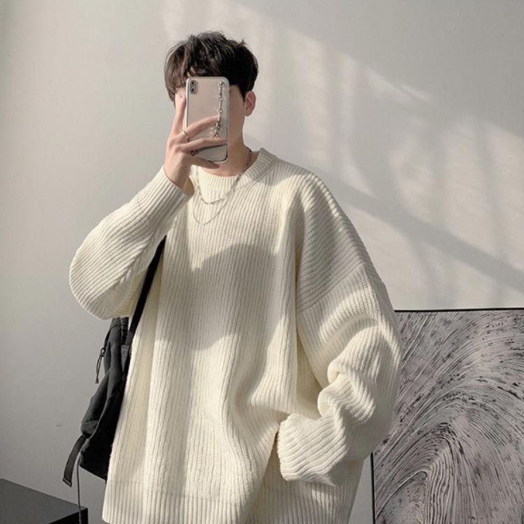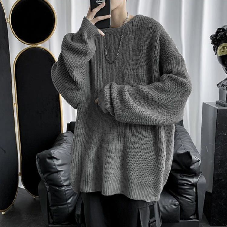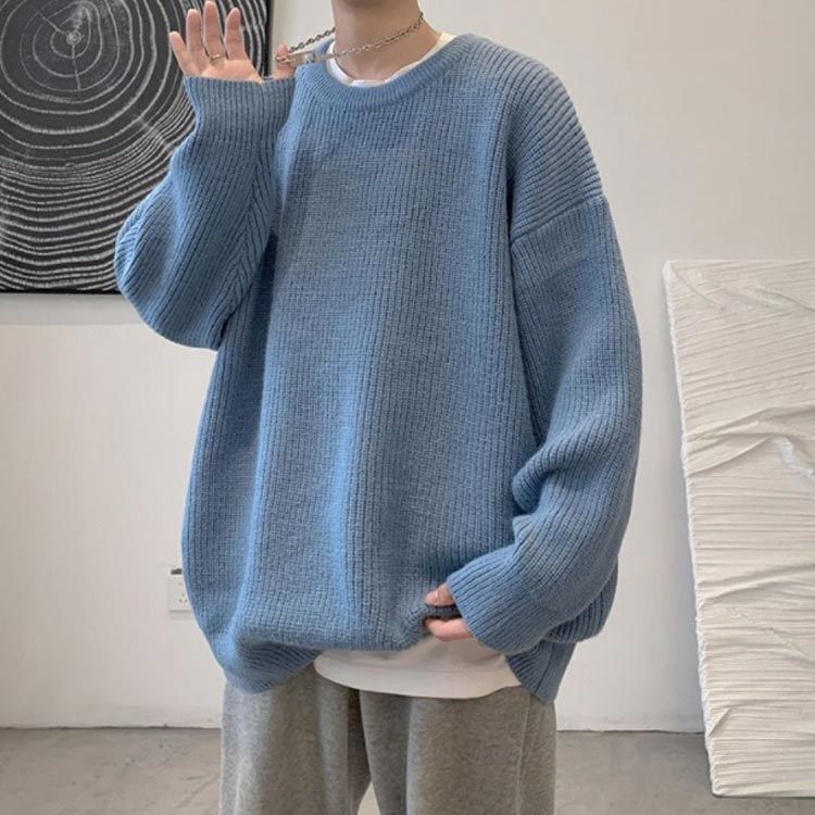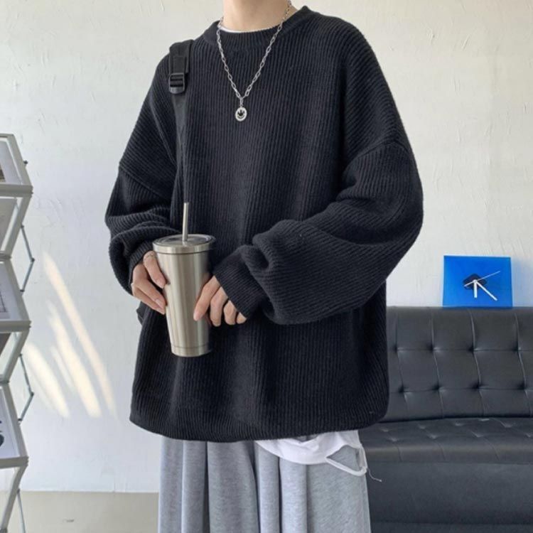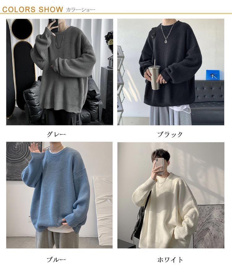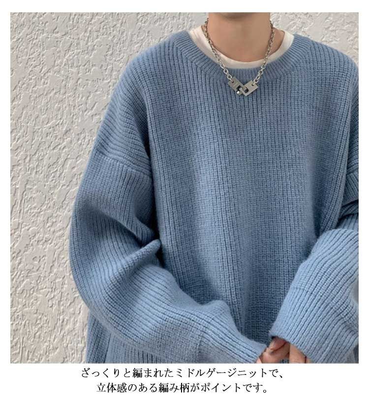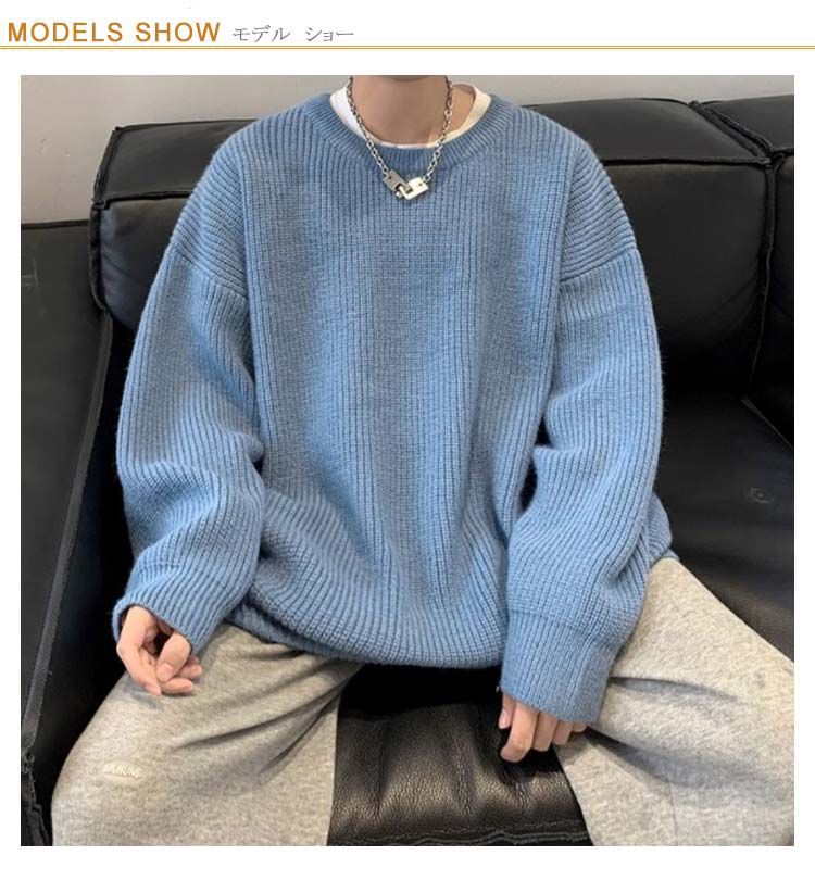 ニットセーター メンズ ニット プルオーバー クルーネック リブ編み 厚手 ニットトップス オーバーサイズ ゆったり 秋 秋冬 リブニット セーター 暖かい 防寒 秋服 冬服 大きいサイズ シンプル #erika7495