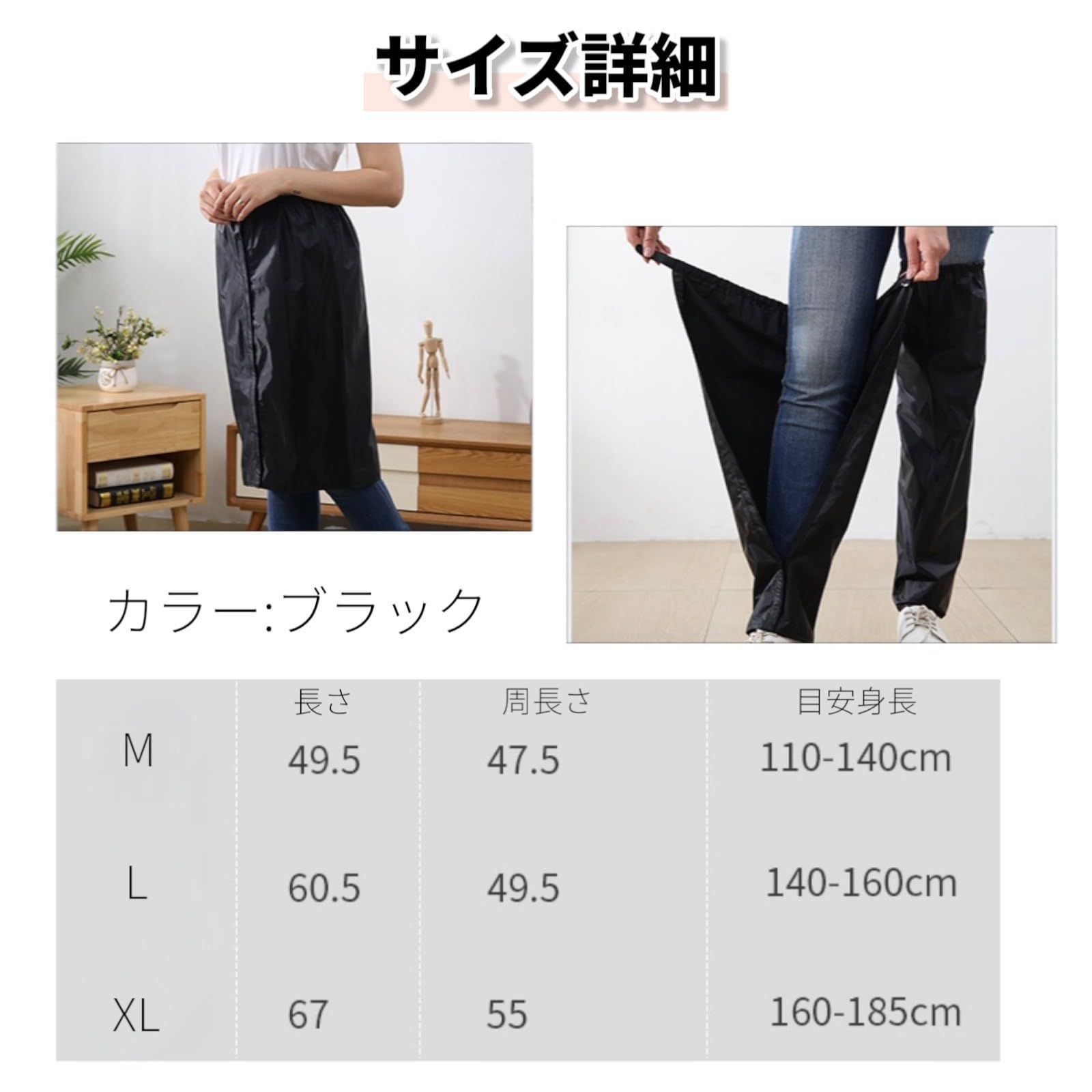 ーーーーーーーーーーーーーーーーーーーーーーーー ☆送料無料☆ ☆即購入大歓迎です!☆ こちらの商品の他のカラー・サイズなど他の種類もそろえています! よろしければ下記のワードで検索してみてくださいね♪ ↓↓↓↓ rFFmaf6mAF で検索 ーーーーーーーーーーーーーーーーーーーーーーーー 【着脱ラクラク防水レッグカバー】 靴を履いたまま簡単に着脱できるフルオープン仕様のメンズ用のレッグカバー。防水加工でズボンをしっかりガードし、突然の雨でも安心。2枚を連結すれば防水エプロンにもなる2way仕様で、通勤・農作業・ガーデニングなど幅広く活躍します。【2wayで便利!雨の日の強い味方】 脚を覆うだけでなく、つなげて腰回りまでカバーできる2wayレッグカバー。撥水素材で雨や泥を防ぎ、農作業や掃除、自転車通勤にもぴったり。ゴム&面ファスナーでしっかり固定され、動きやすさも抜群です。【通勤・ガーデニングに最適な防水カバー】 レッグカバー&レインエプロンの2WAY仕様。靴を履いたまま着脱でき、マジックテープでサイズ調整も簡単。撥水性のある生地で、水回りの家事や外作業に最適。長靴との併用でさらに快適に使えます。【多用途で使える防水レッグカバー】 ガーデニング・農作業・掃除・アウトドアなど、さまざまなシーンで大活躍の防水レッグカバー。太ももまでしっかりカバーし、ズレ落ち防止のゴムバンド付き。軽量で持ち運びにも便利なアイテムです。【サイズ豊富!家族で使える防水カバー】 M・L・XLの3サイズ展開で、子どもから大人まで対応可能。軽くて柔らかい撥水素材で、汚れや水濡れからズボンを守ります。2枚を連結してエプロンにも使える2way仕様は、一つ持っておくと便利です。 こちらの商品は、撥水加工を施したメンズ用の防水レッグカバーで、フルオープン仕様により靴を履いたまま簡単に着脱可能な設計です。太もも部分はゴムバンドでズレにくく、縦方向は面ファスナーでしっかり固定できます。左右のレッグカバーを連結すれば腰まで覆えるエプロンとしても使用できる2way仕様で、雨の日の自転車・バイク通勤や通学、ガーデニング、農作業、掃除など幅広いシーンに活躍します。M・L・XLの3サイズ展開で、身長110cmから185cmまで対応し、男女問わずご使用いただけます。