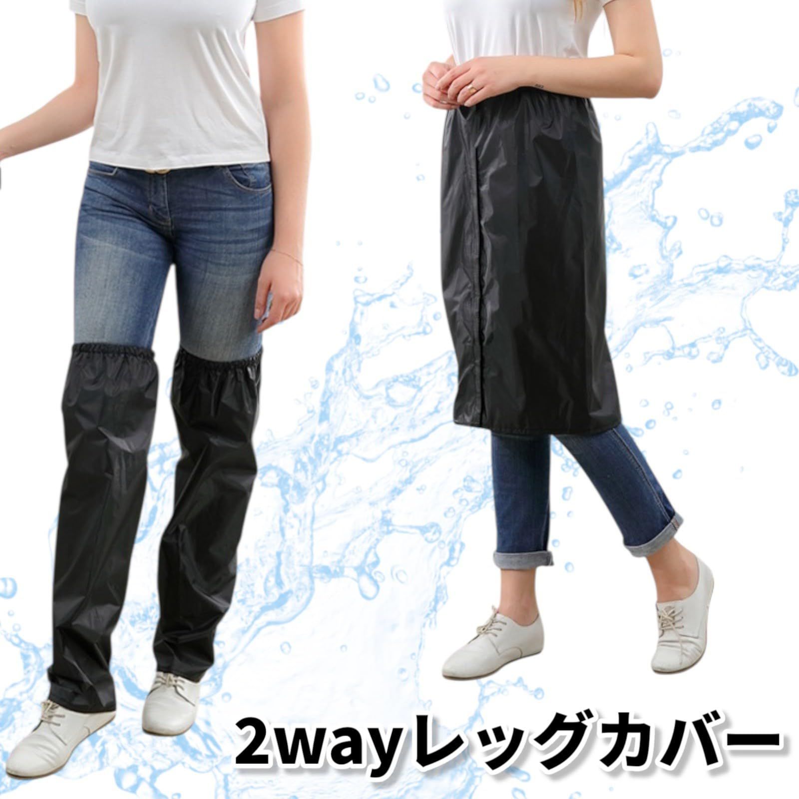 [ヒカリカ] レッグカバー メンズ 雨 防水 脚 レインコート フルオープン バイク ブラック 2way 自転車通勤 雨対策 ガーデニング (Lサイズ) [L]