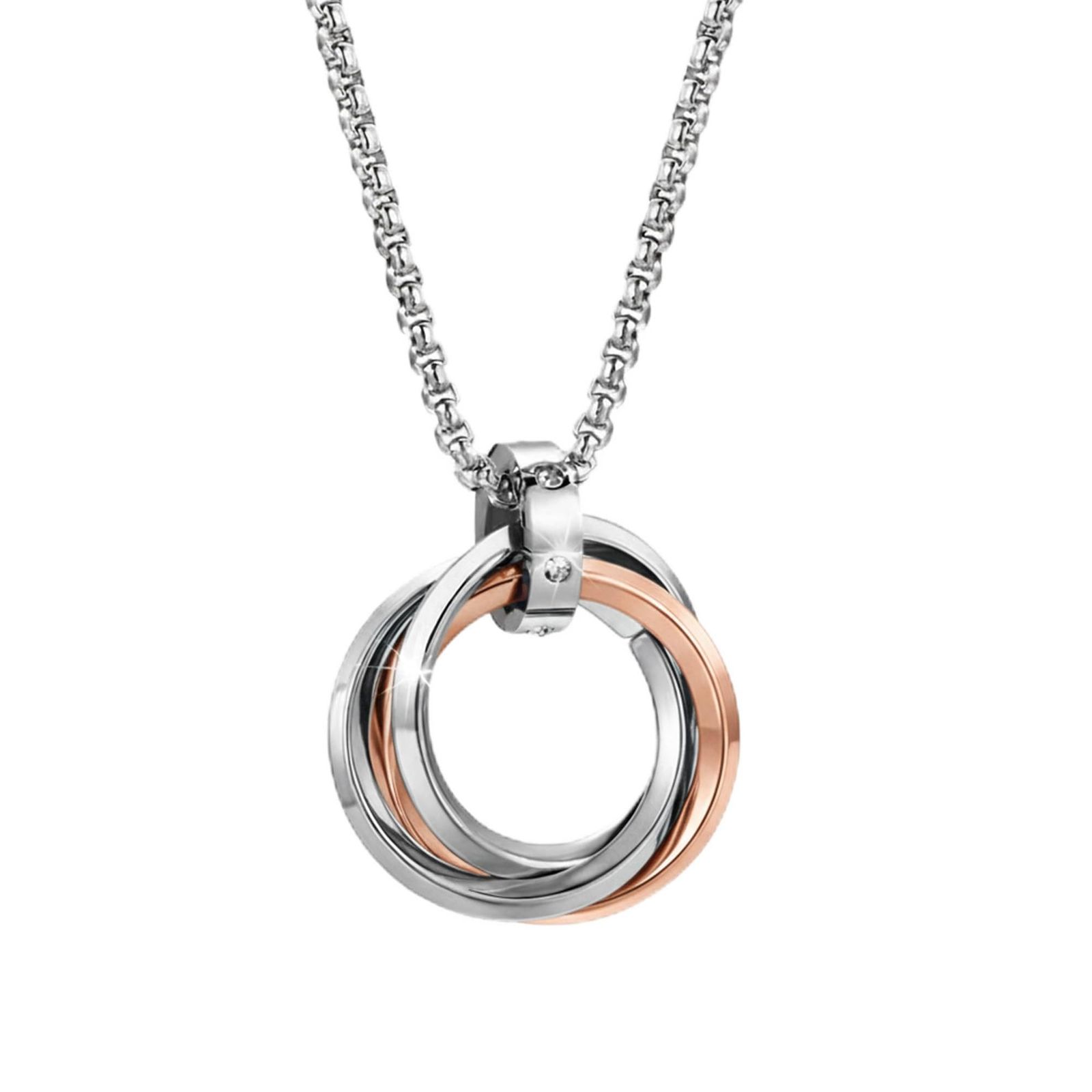 CREATERA [クレアテラ] 2WAYで魅せる サングラスホルダー ネックレス メンズ レディース 3連リング ジルコニア ペンダント 長さ60cm 金属アレルギー対応 サージカルステンレス316L おしゃれ プレゼント ユニセックス ギフト (ピンクゴ