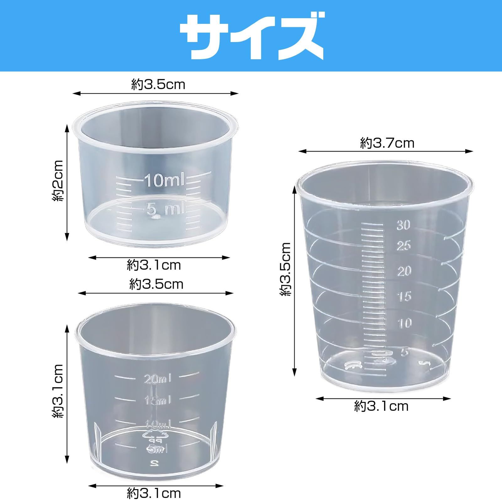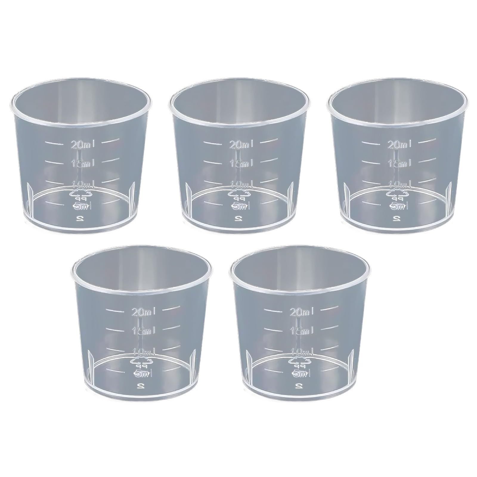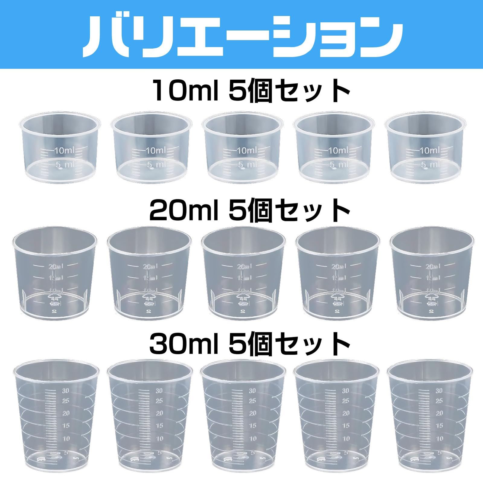 【商品仕様】セット内容:プラスチックビーカー×5個 材質:耐久性プラスチック(PPまたはPE) 容量:20ml/30ml(各5個ずつ)
