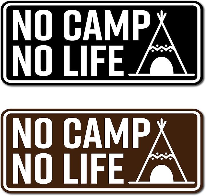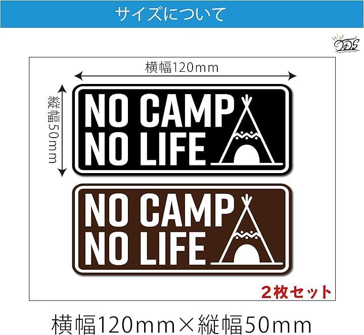 オリジナルデザインストア NO CAMP LIFE キャンプステッカー アウトドア用ステッカー シール W120mmxH50mm 2枚セット 車用 バイク用 クーラーボックス 屋外 (ブラック ブラウン)