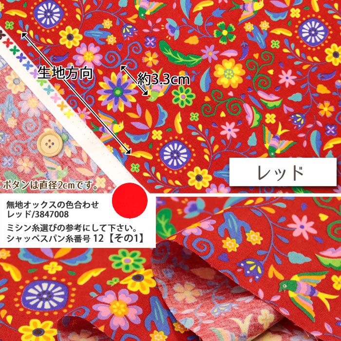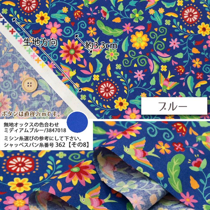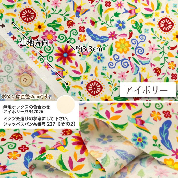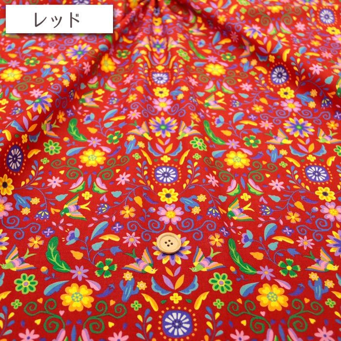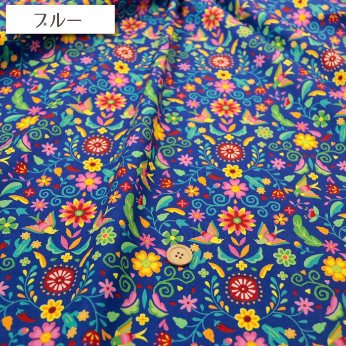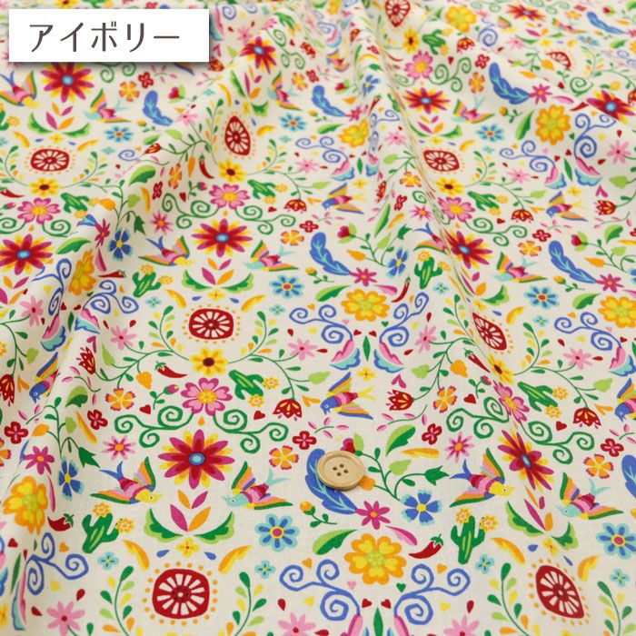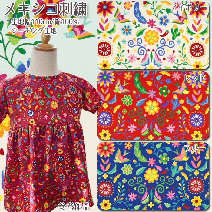 メキシコ刺繍 un/no シーチング生地 刺繍 花柄 Mexico モダン オリエンタル 服地 トラベル ハンドメイド 手作り 裁縫 50cm単位