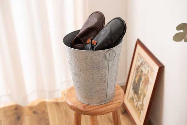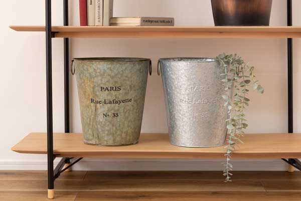 スチール製(粉体塗装)レトロデザインのマルチ収納(ダストボックス)「φ25×H29cm」(丸型)No.426/シルバー
