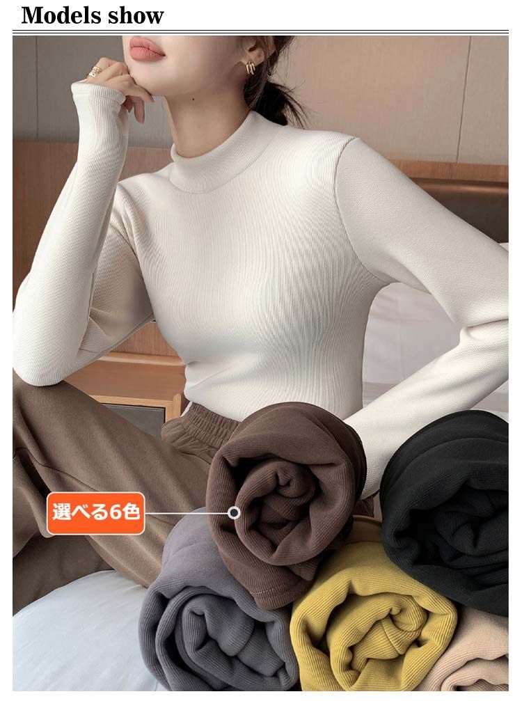 裏起毛 インナー レディース 長袖 冬 裏ボア 長袖インナー リブ 裏ボア 冬 カットソー ハイネック リブ カットソー 裏 ボア ストレッチ 防寒 下着 暖かい 着る毛布 大きいサイズ 送料無料#goudoudou4048