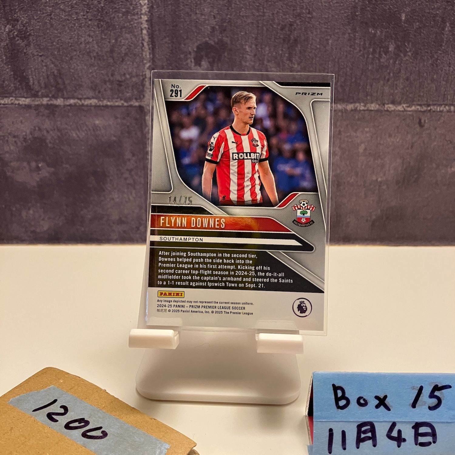 2024 Panini Flynn Downes 14/75 Southampton Blue Cracked Ice Prizm Parallel カード