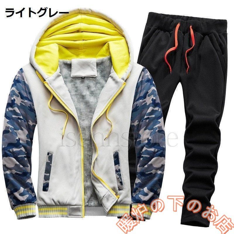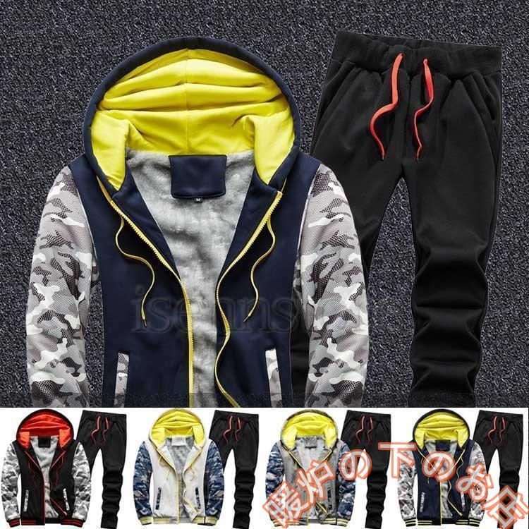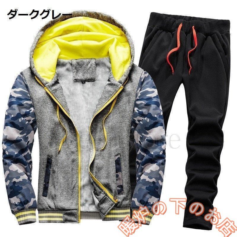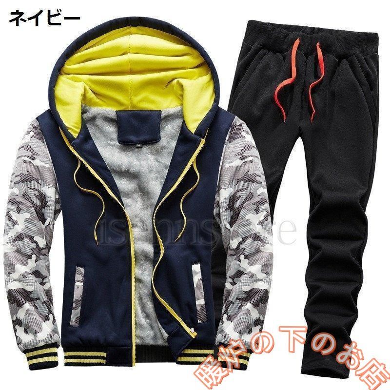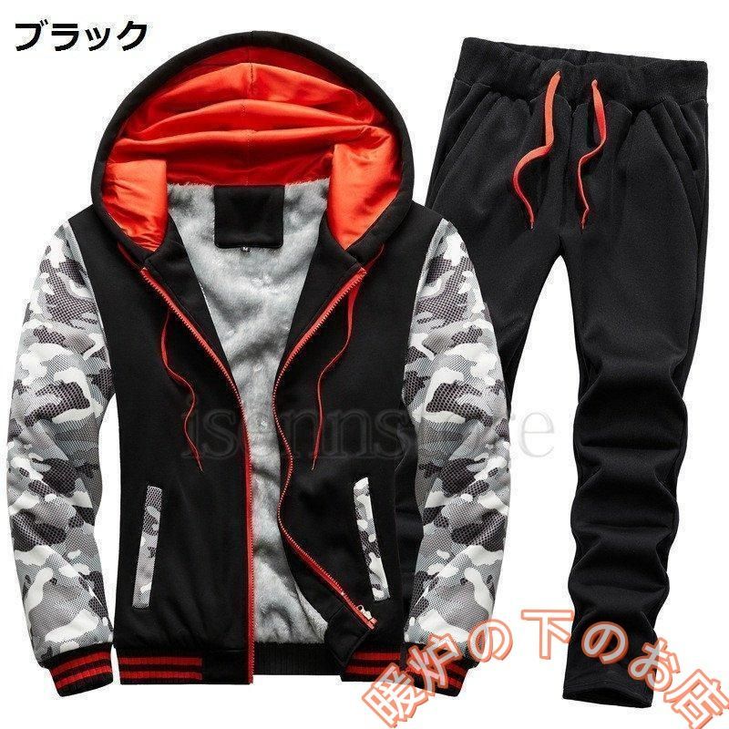セットアップ 冬 メンズ 裏起毛 暖かい パンツ スウェットパーカー 防寒 ジャージ 上下 2点セット 迷彩 切り替え 大きいサイズ051525