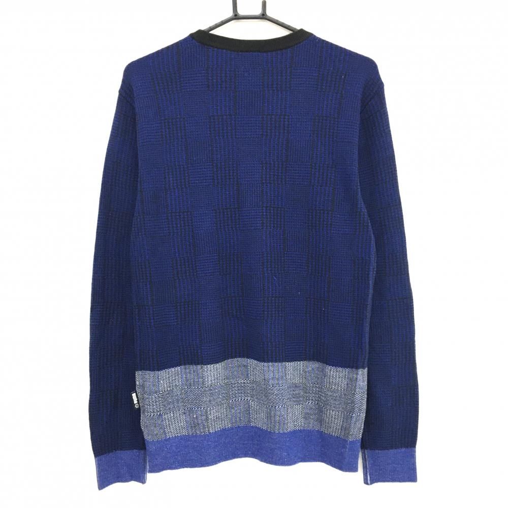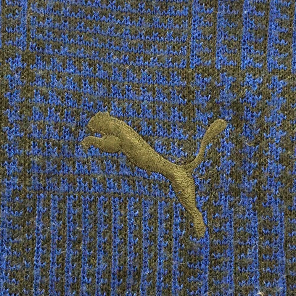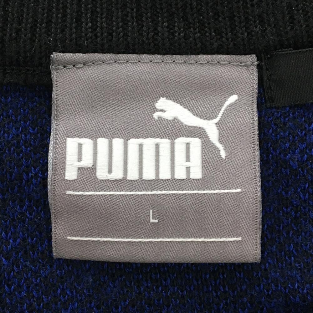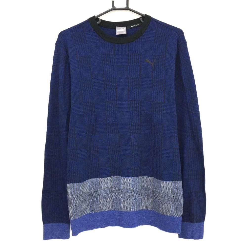 プーマ セーター ブルー×黒 グレンチェック調 ニット ウール混 メンズ L ゴルフウェア PUMA