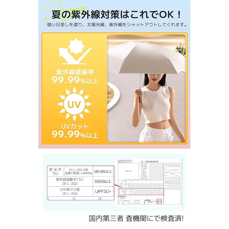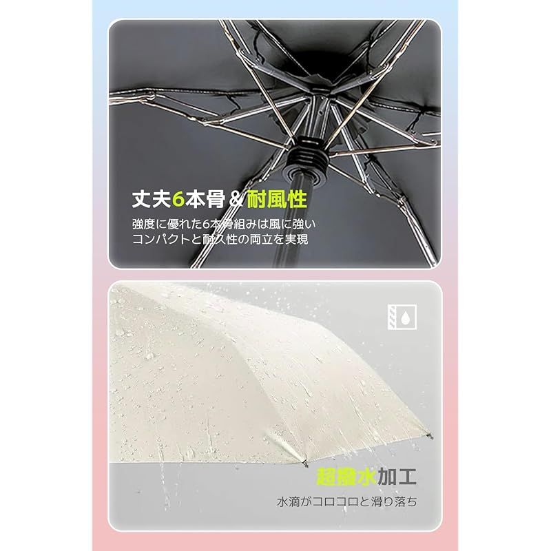 商品名:日傘 折りたたみ傘【超軽量149g・JIS認証】UVカット 遮光 遮熱 日焼け防止 熱中症対策 紫外線遮断 6本骨 撥水耐風 晴雨兼用 小型 コンパクト 携帯便利 (オフ×ベージュ)