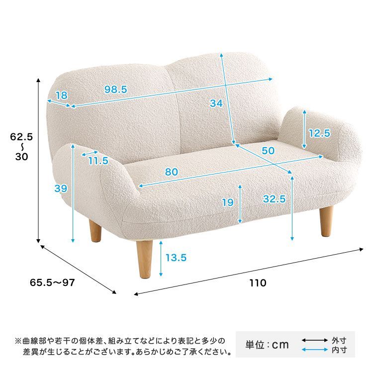 大人かわいいインテリア ブークレソファ 2人掛け【Chammy -チャミー-】 SH-07-OKBFS-GENA