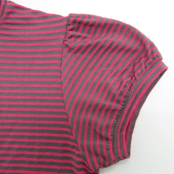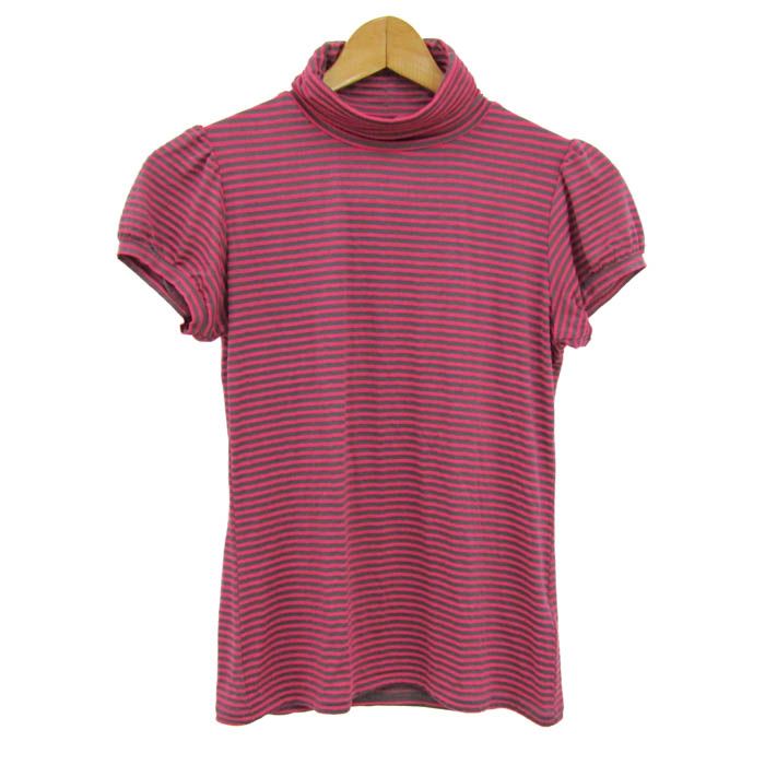 エディフォーメーション 半袖Tシャツ トップス タートルネック ボーダー柄 レディース 2サイズ ピンク×グレー Eddy formation 【中古】