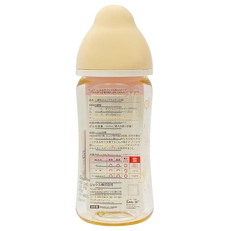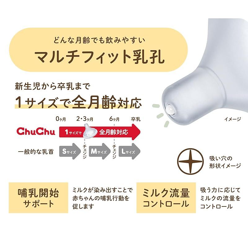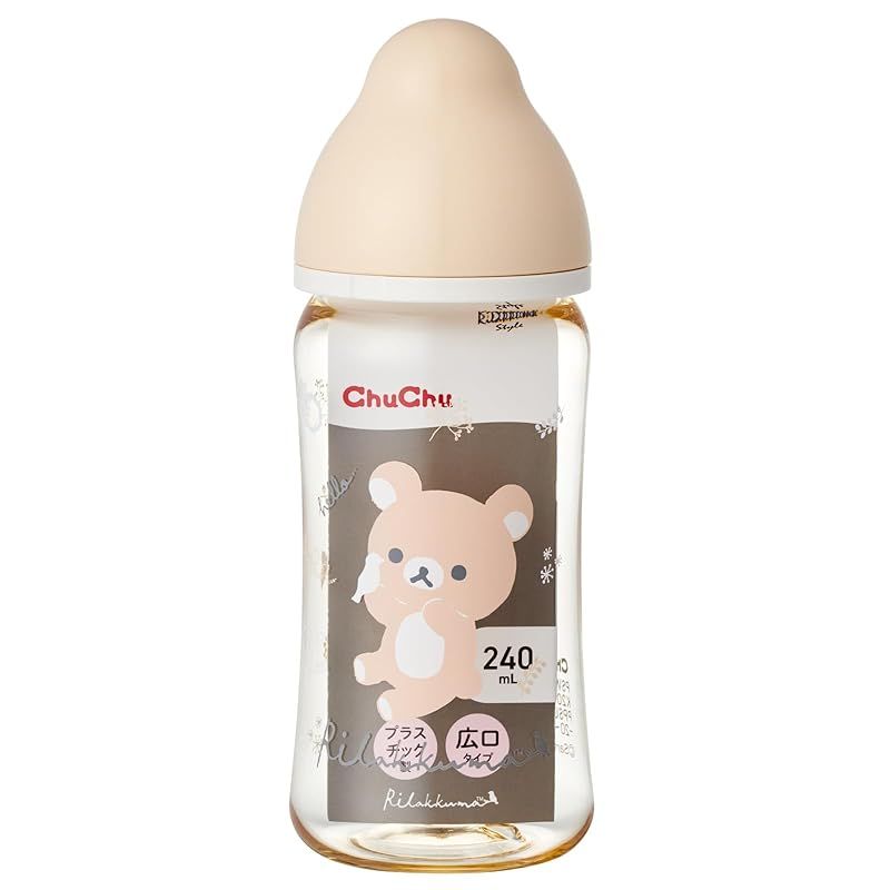 ChuChu(チュチュ) マルチフィット 広口タイプ プラスチック製 哺乳瓶 240mL リラックマ 新生児~卒乳まで 洗いやすい 専用キャップ・フード付き 1