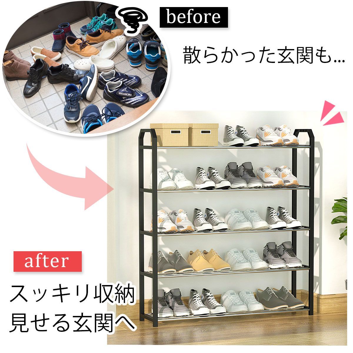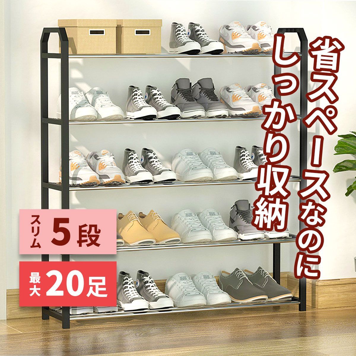 シューズラック 省スペース スリム 靴箱 シューズボックス 下駄箱 薄型 靴箱 玄関収納 大容量 靴置き 組み立て式 5段