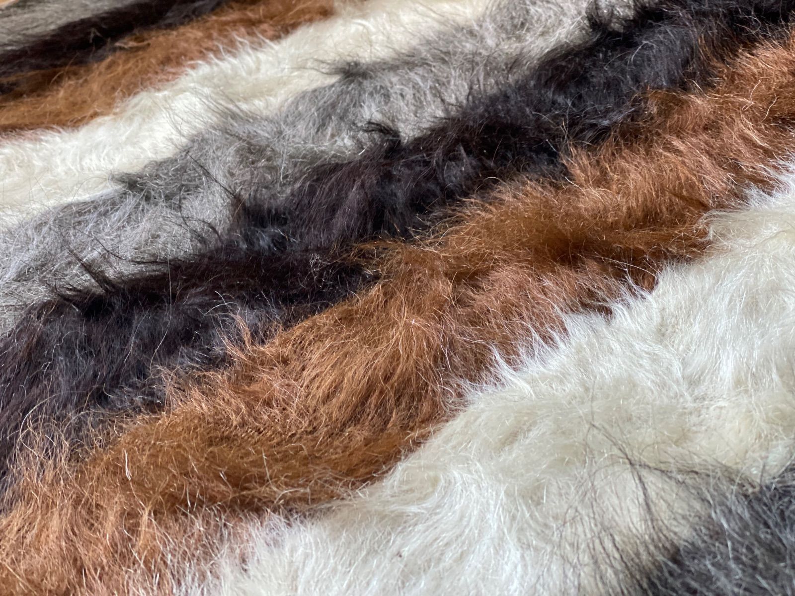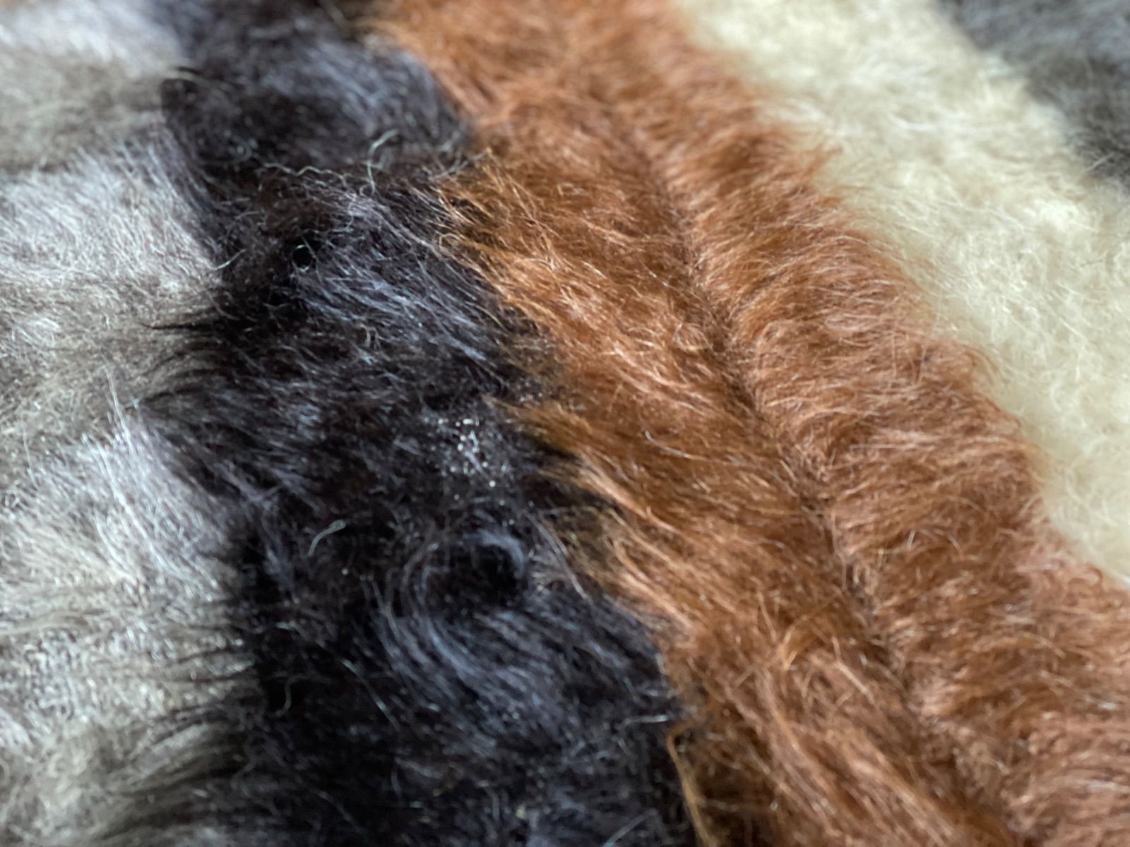 特にアンゴラ山羊からのモヘヤを使って織られているこのシイルトは大変価値も高いもので、艶もあり、素晴らしく温かいです。 自然のアンゴラヤギの毛で織られていますので、独特のくるくるとした感じも可愛く、とてもナチュ ラルな感じです。アンゴラ山羊は18世紀の中ごろまでオスマントルコが飼育を独占していたらしいです。