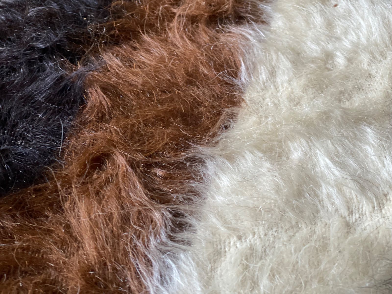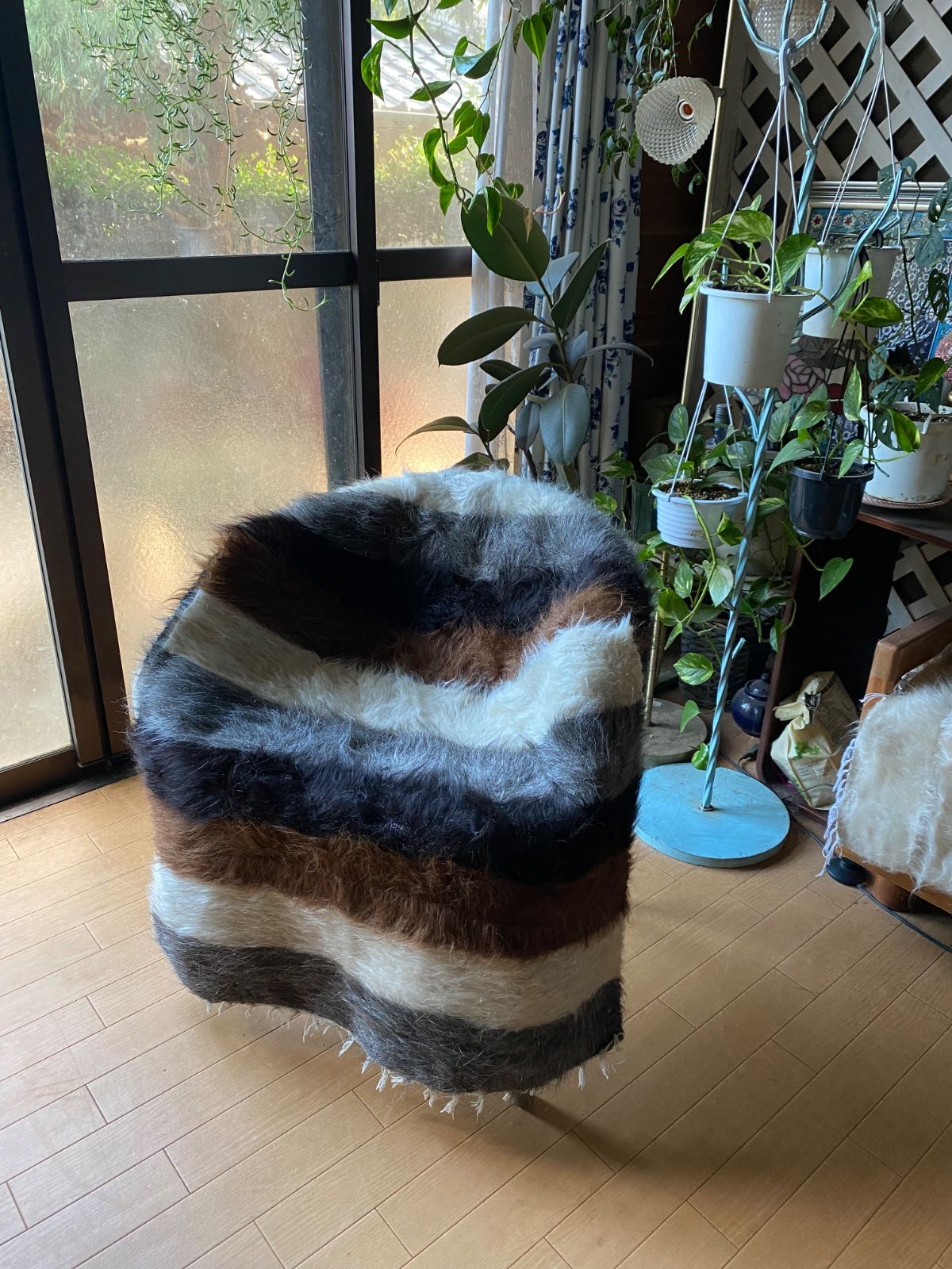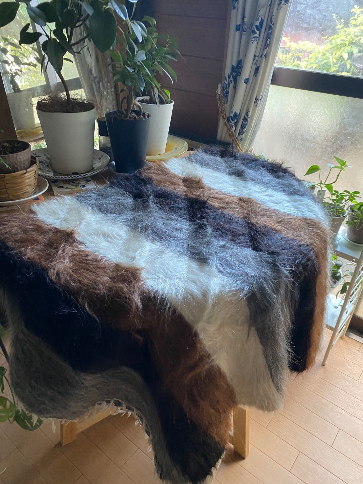 アンゴラヤギのモヘアで織られたほぼ新品未使用ですが、40年ほど織られたもので今織られたものよりさらに密でモヘアの質が大変良いです。新古品になります。