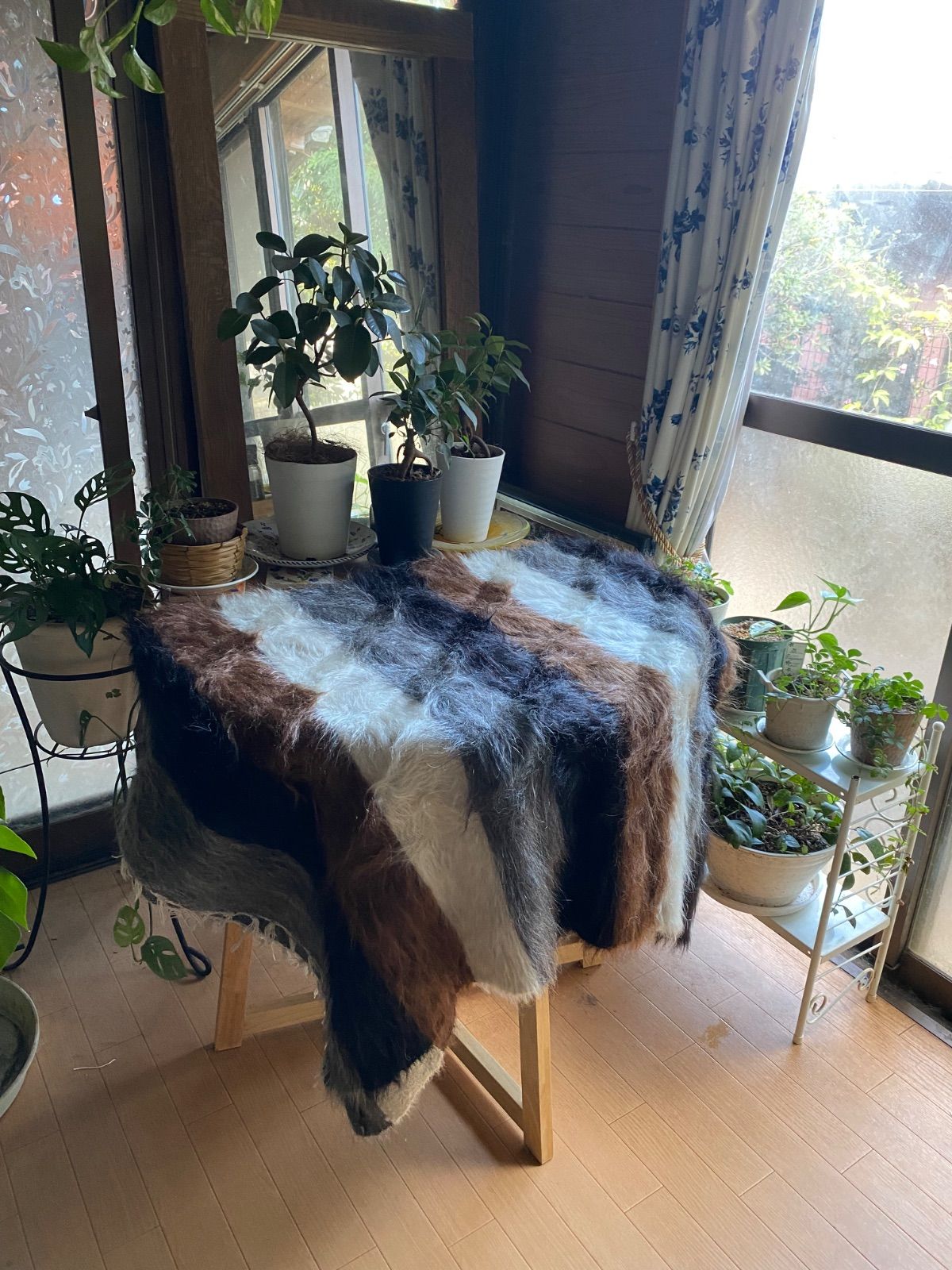 冬は毛がある面で、夏は裏面でキリムとしてお使いいただける優れものです。