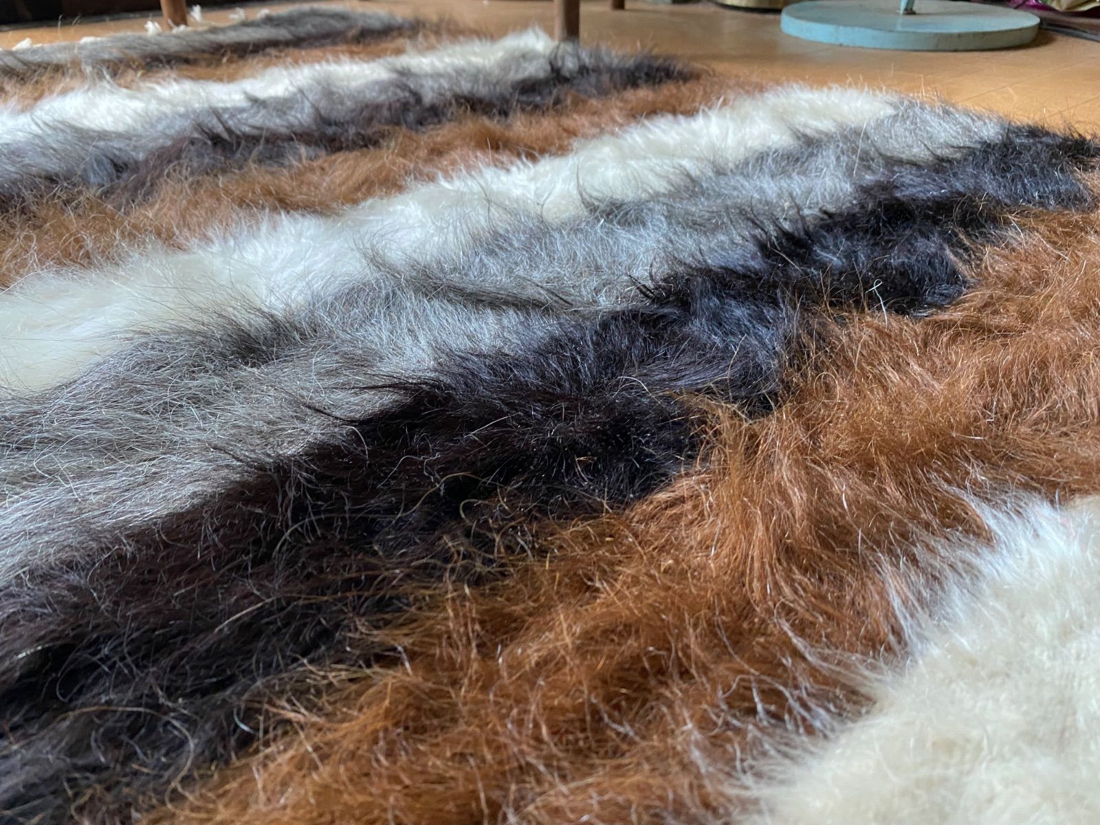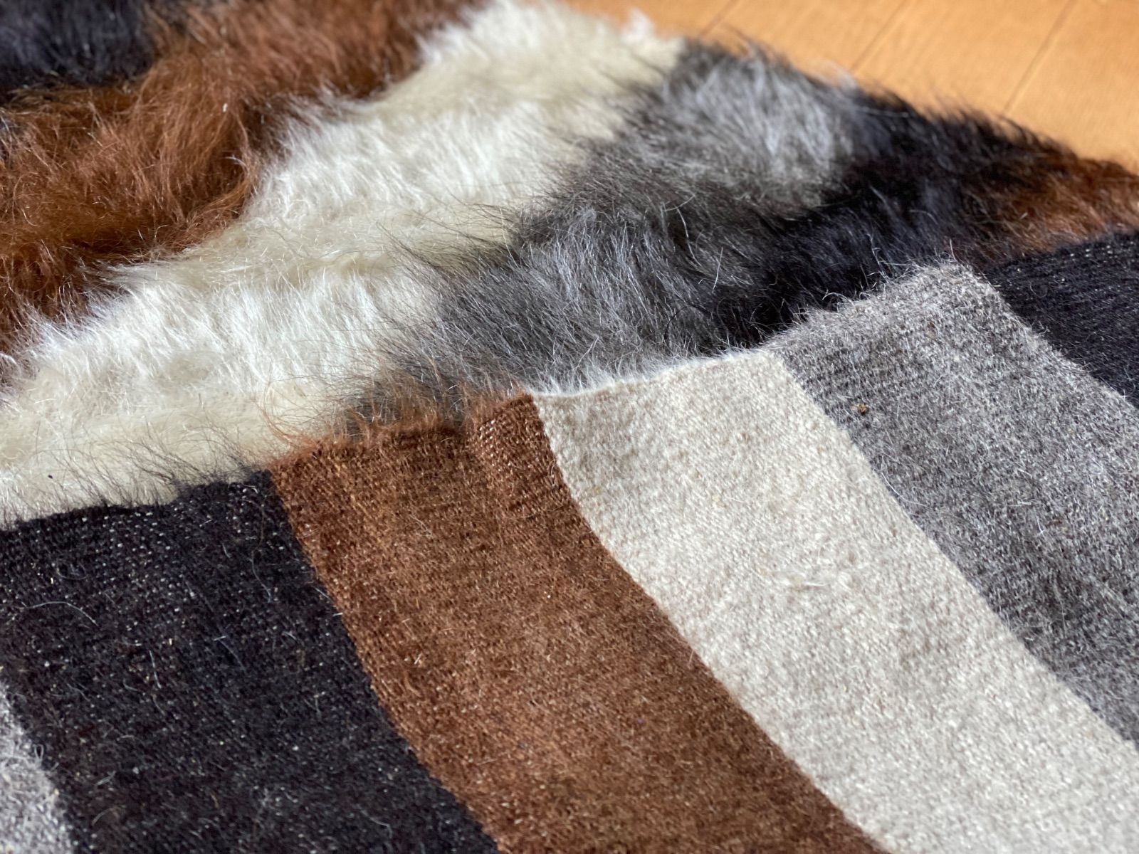 遊牧民によって動物の毛を紡いで織られているため、特に山羊の毛は多少ちくちく感はございます。