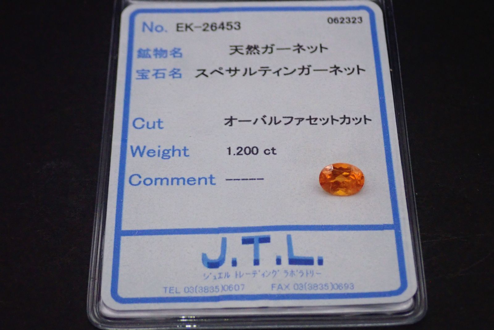 天然スペサルティンガーネット ルース 1.200ct 約5mm×7mm ソーティング付き!