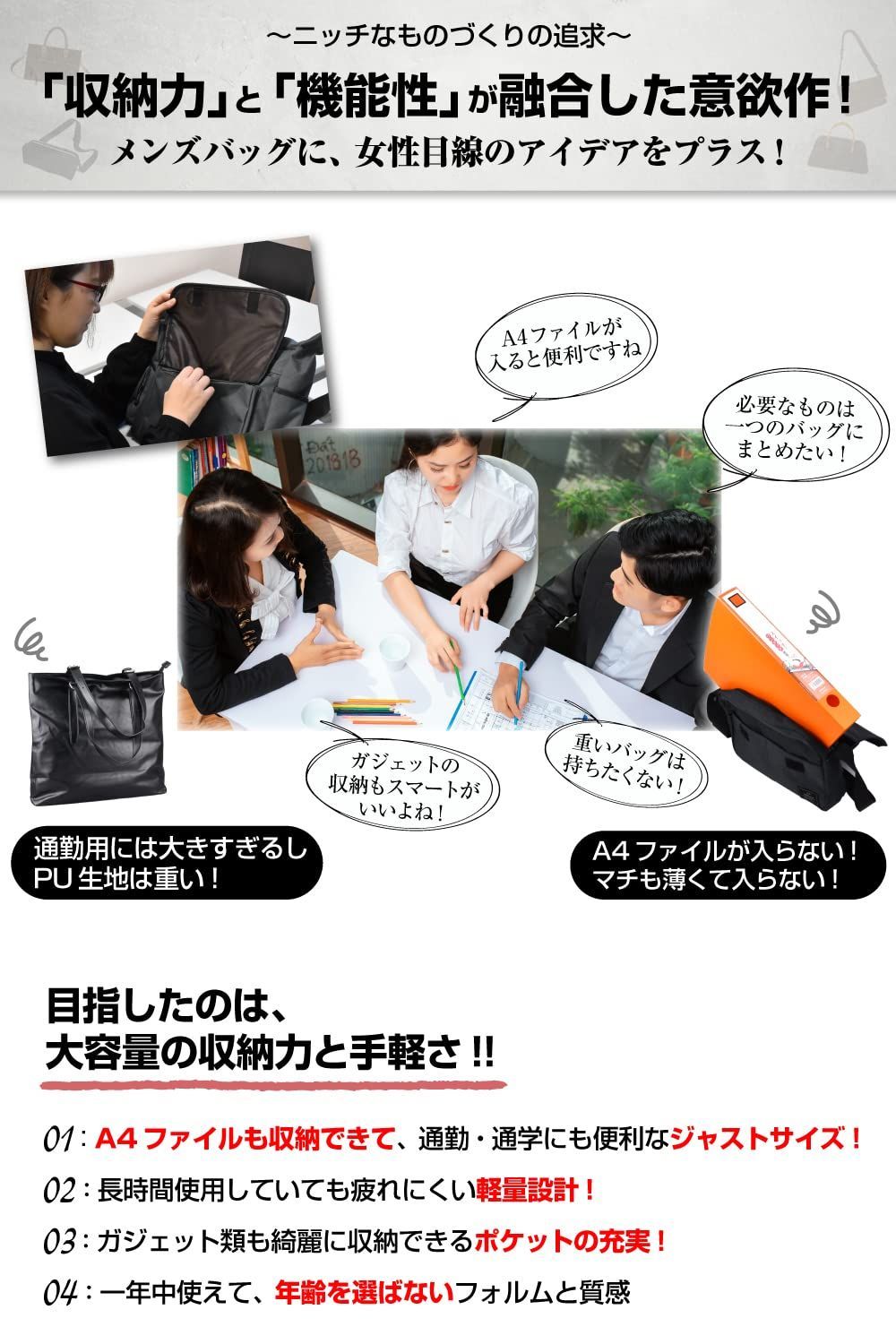 5cm幅の広めのショルダー紐は、重い荷物や長時間肩掛けしても肩が痛くなりにくい仕様です。調節可能なショルダー紐は長めなので、男性でも斜めがけが可能。床に置いても倒れにくい自立型も嬉しいポイントです。
