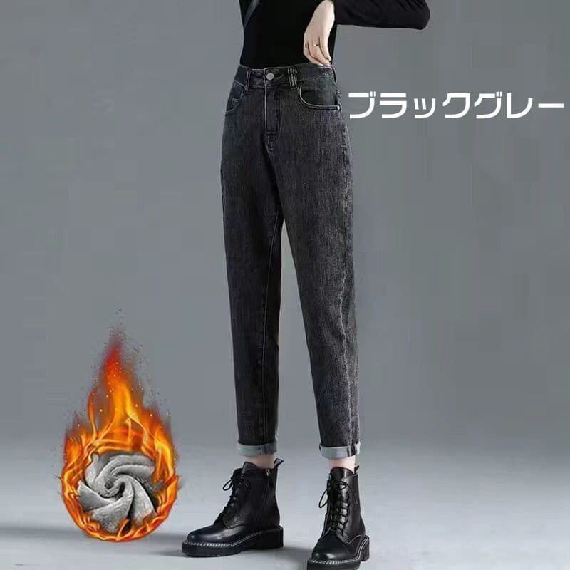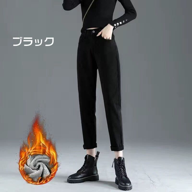 裏起毛 デニム レディース テーパードパンツ 防寒 デニムパンツ 裏起毛 レディース 秋冬 ボトムス 防寒パンツ 寒さ対策 厚手 体型カバー ゆったり ズボン 裏ボア 美脚 あったか サルエルズボン 9分丈 ハイウエスト シンプル 黒 ポケット カジュアル 定番