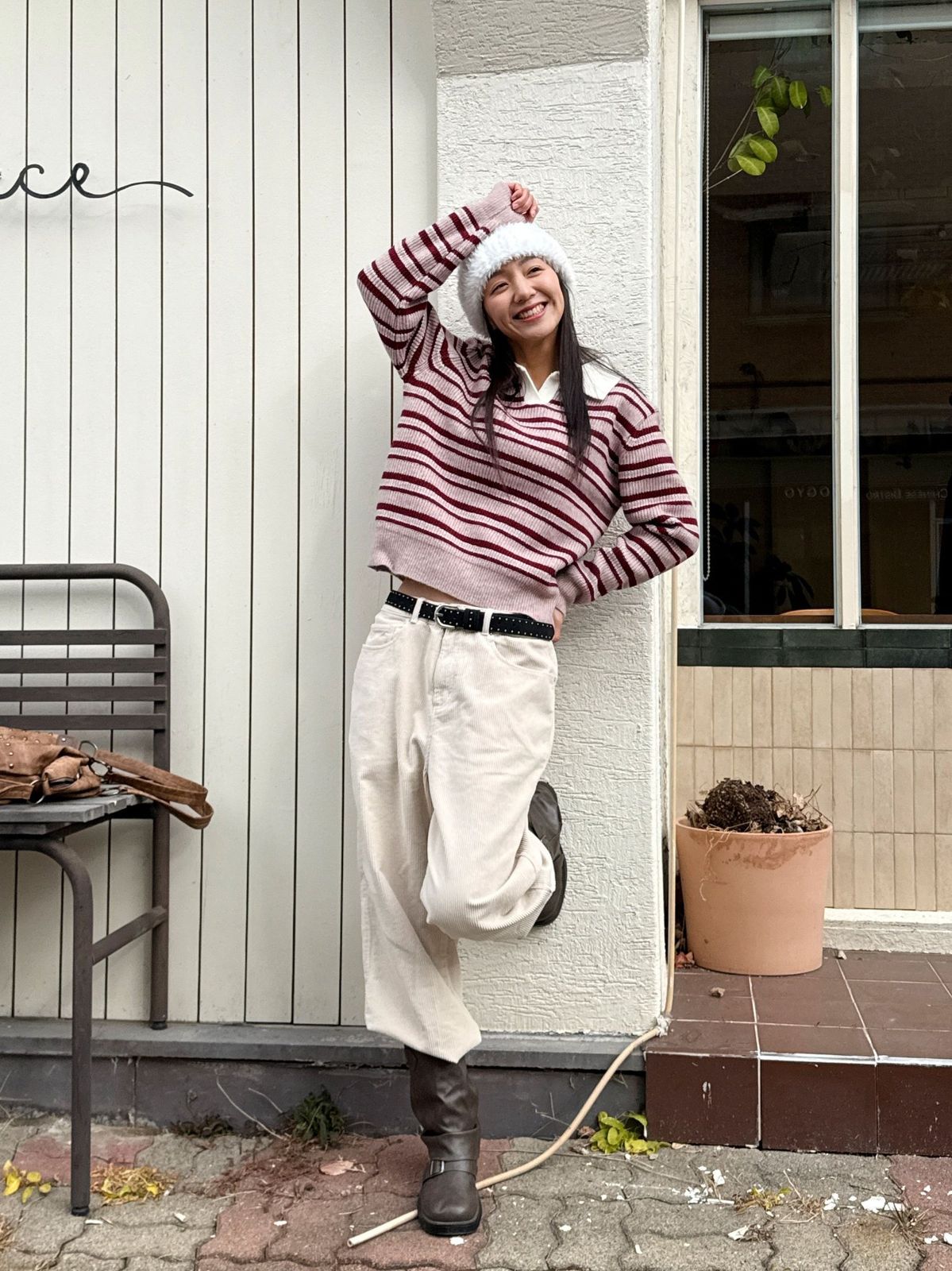 ルーミング カラーニット(冬新作、カジュアル、ボーダー柄、ストライプ、韓国国内生産)
