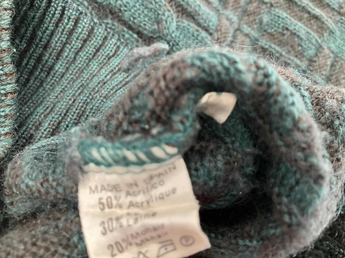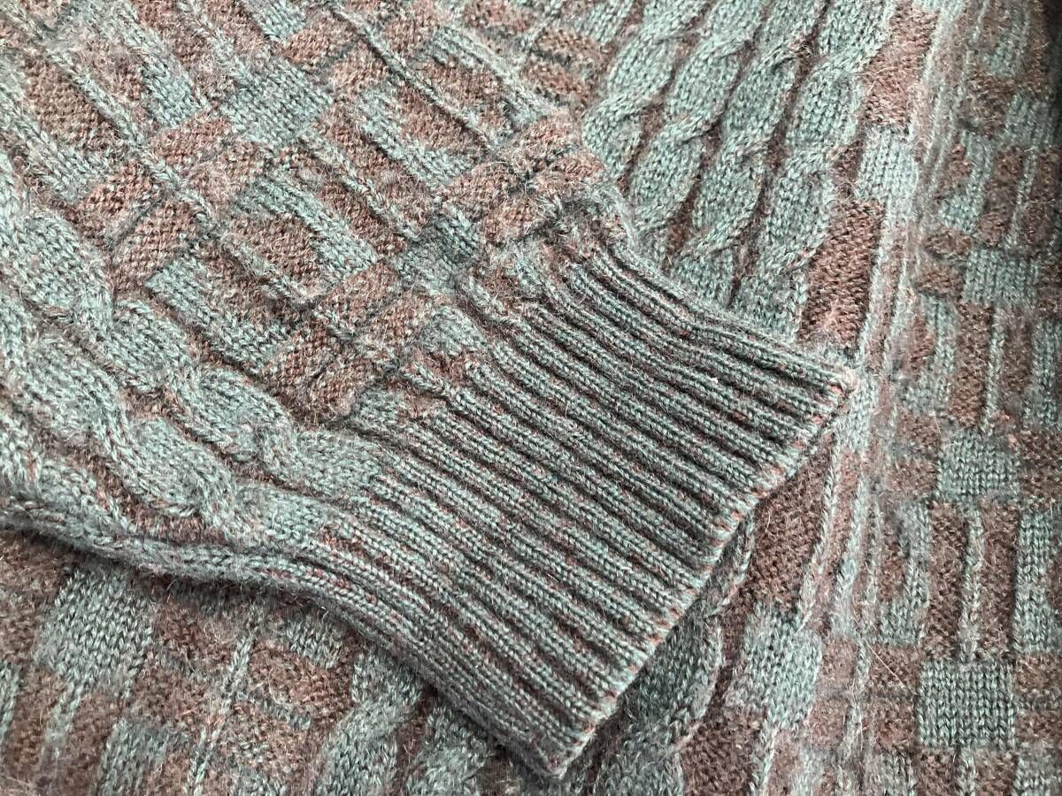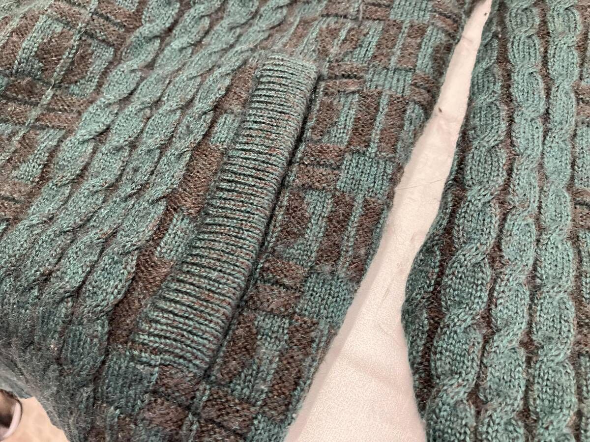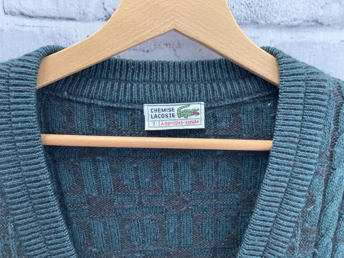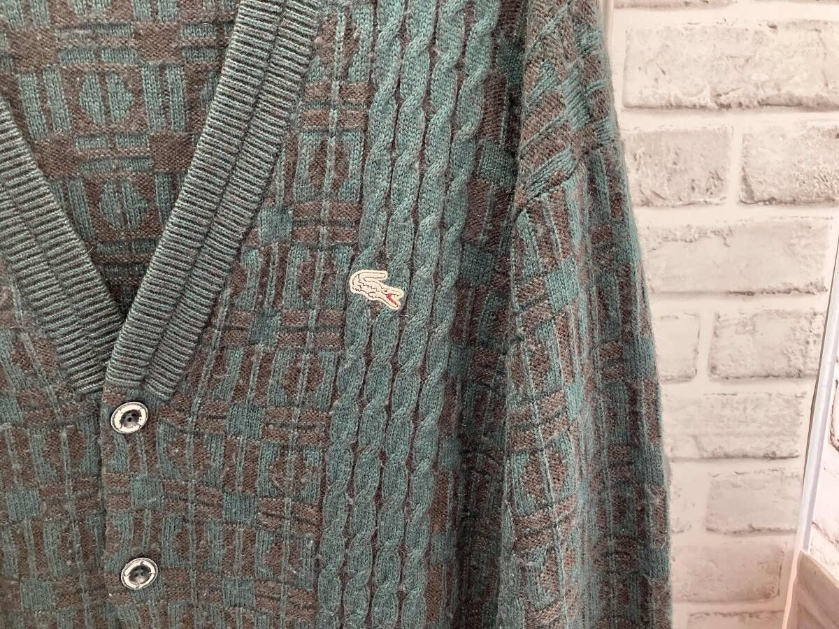 CHEMISE LACOSTE/古着/80s~90s/ウールカーディガン/スペイン製/サイズ7(XL相当)/グリーンカラー/総柄/ラコステ