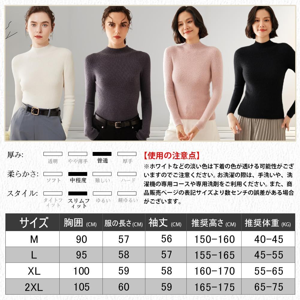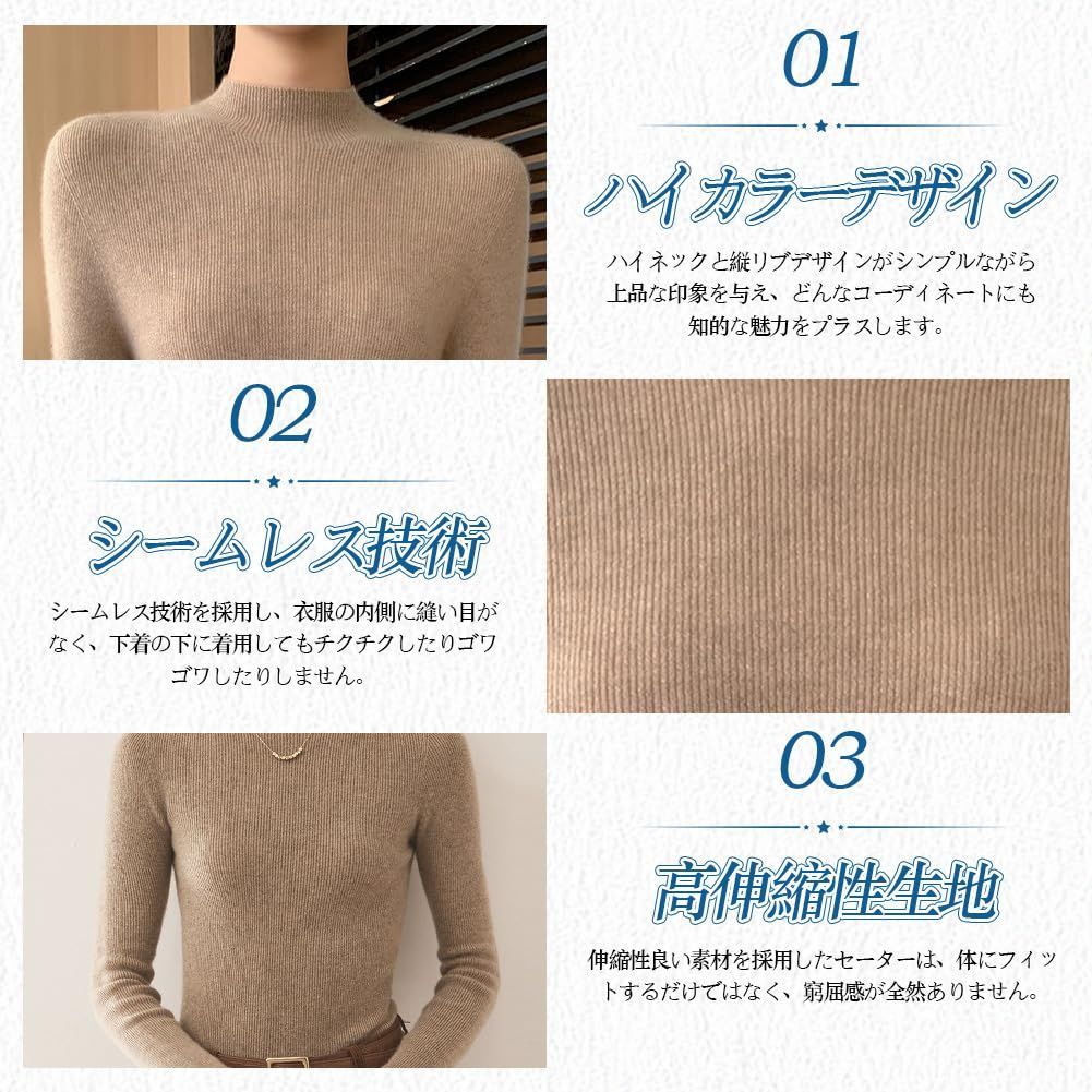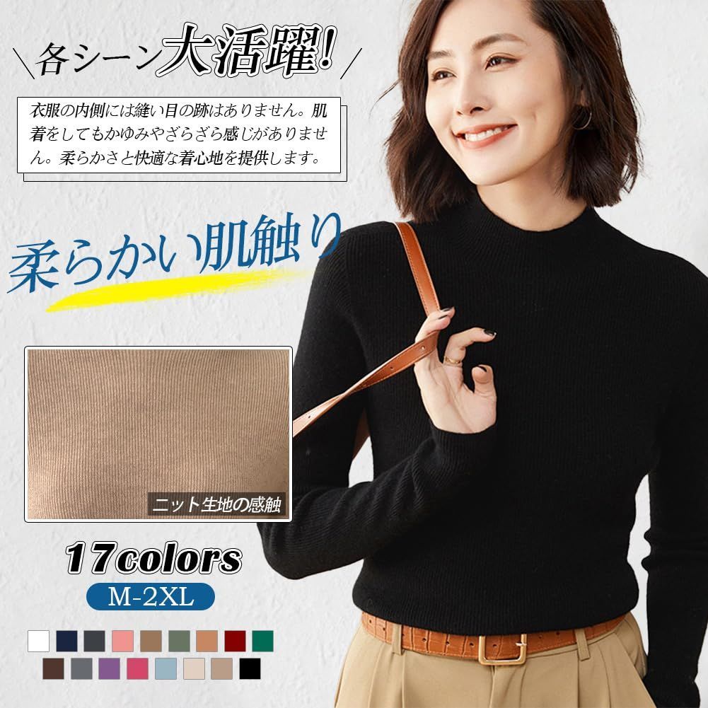 [ANGJ] リブニット セーター トップス レディース 秋冬 無縫製 4サイズ展開 高伸? 薄手 高級魅力的な縦リブ 重ね着に便利 ニットソー ハイネック カットソー 着痩せ 華奢見え 無地 長袖 ストレッチ