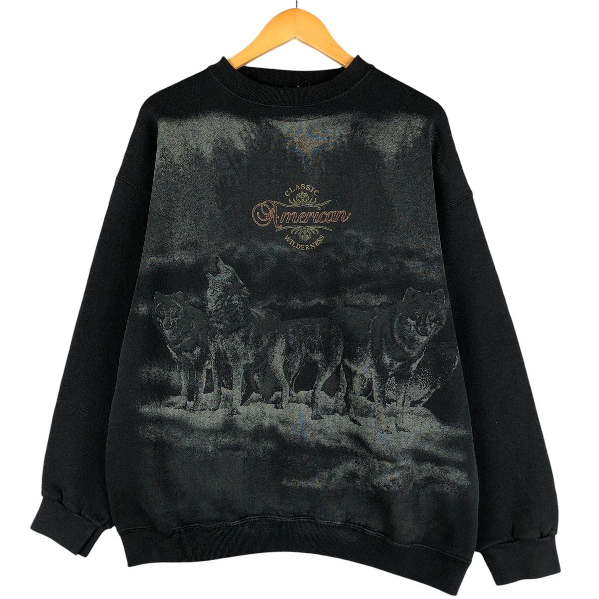 古着 90年代 TSi オオカミ柄 大判プリント アニマル スウェットシャツ トレーナー USA製 メンズXL相当 ヴィンテージ/eaa596716