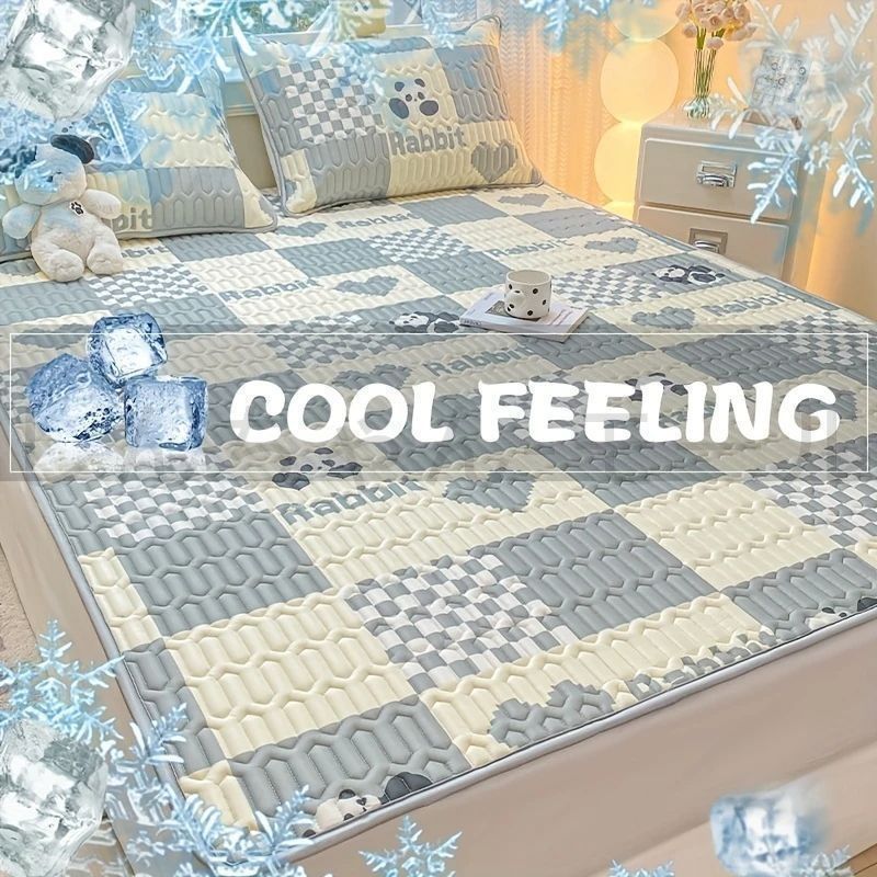 1点 夏用冷却マットパッド ソフトクールポリエステル 可愛いパンダ柄 折りたたみ可能 洗濯機対応 ティーン 寮 家庭用 寮ルーム必需品 遊び