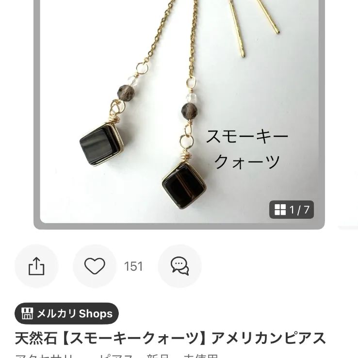 お待たせしております ご都合のよろしい時にご確認をお願いいたします ・スモーキークォーツ アメリカンピアス 【ネジバネイヤリング】 チェーン部分約1.5cmになります 780円+100円 合計880円 ※普通郵便(定形外)発送予定