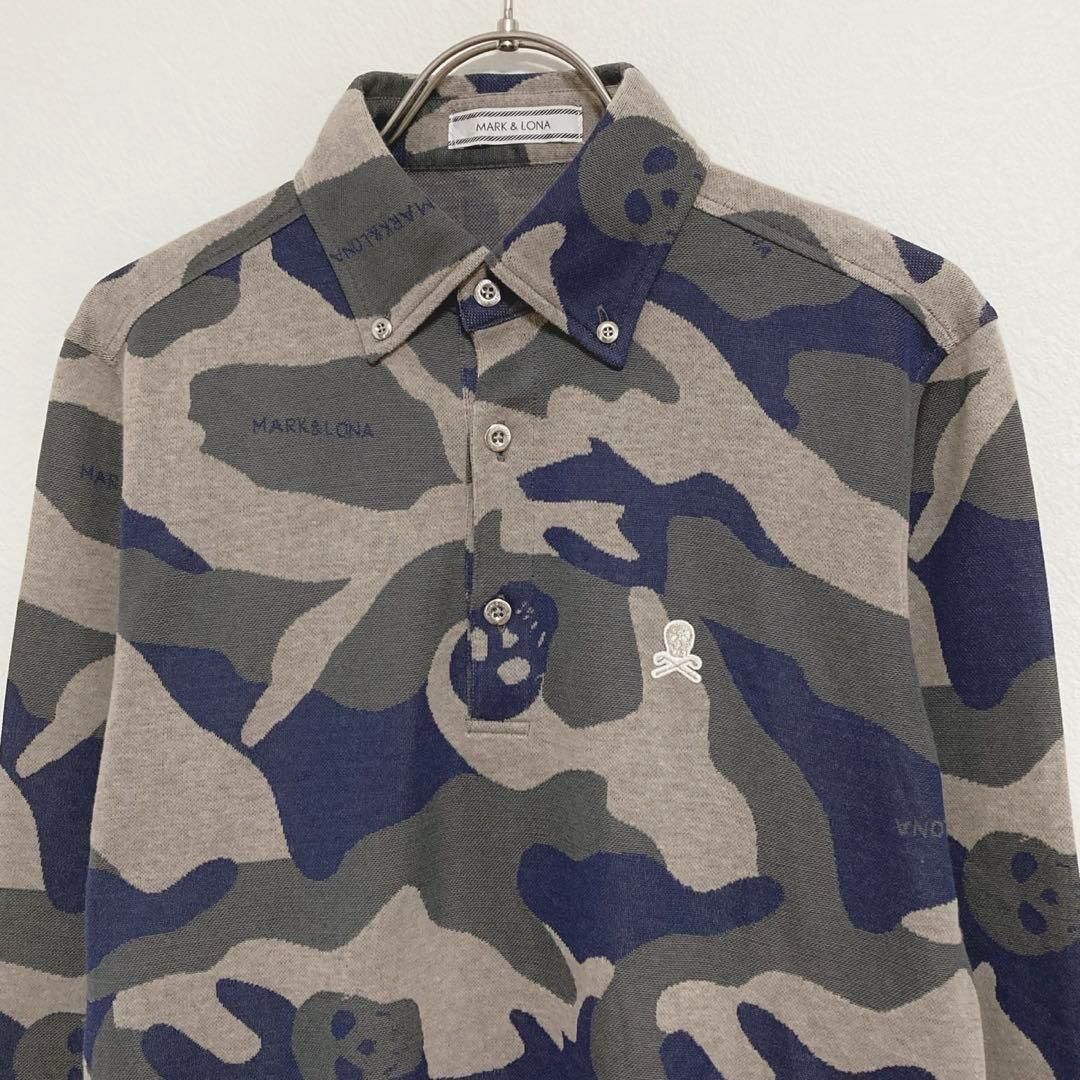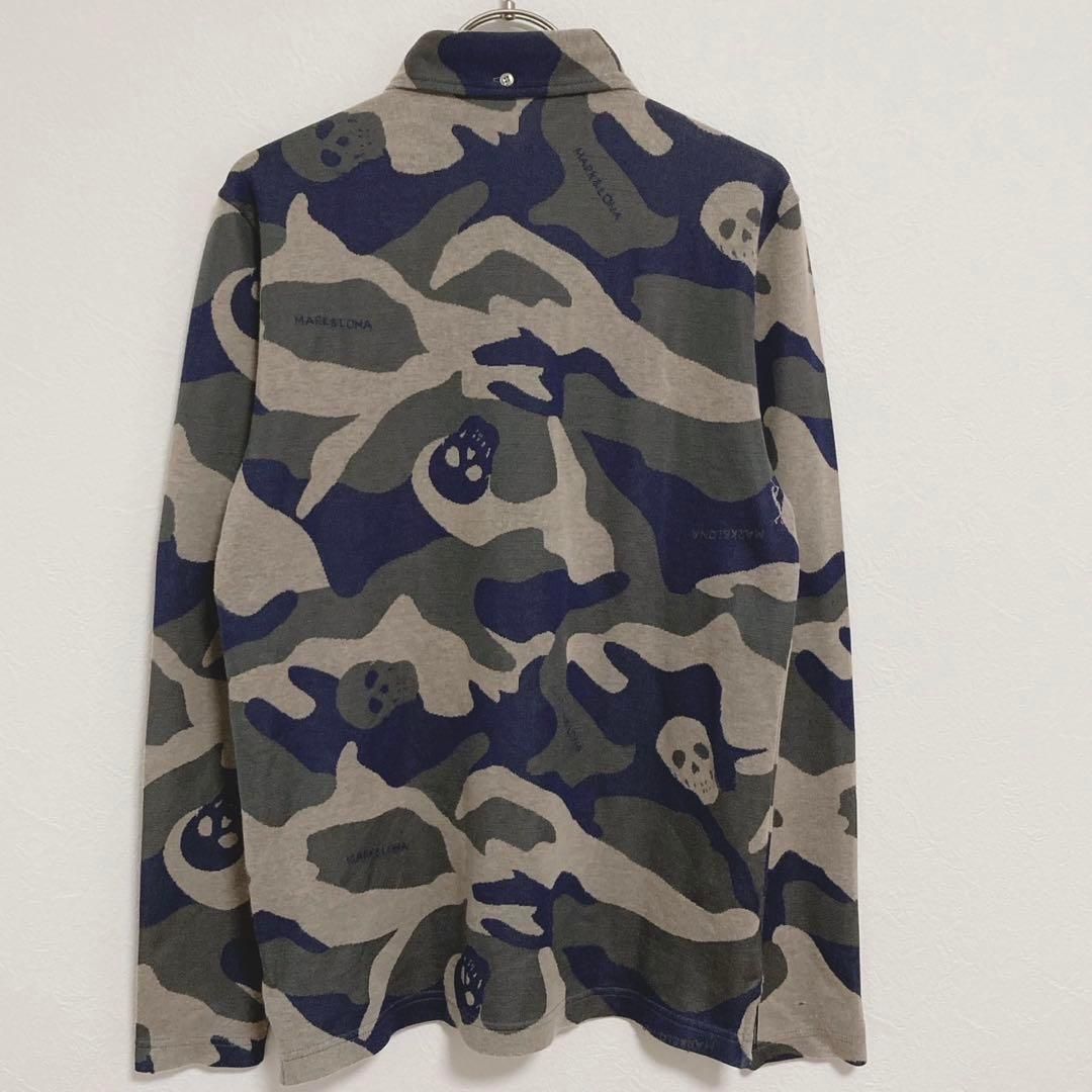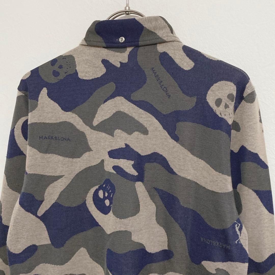 スカル カモフラ 長袖トップス 迷彩 ハーフボタン