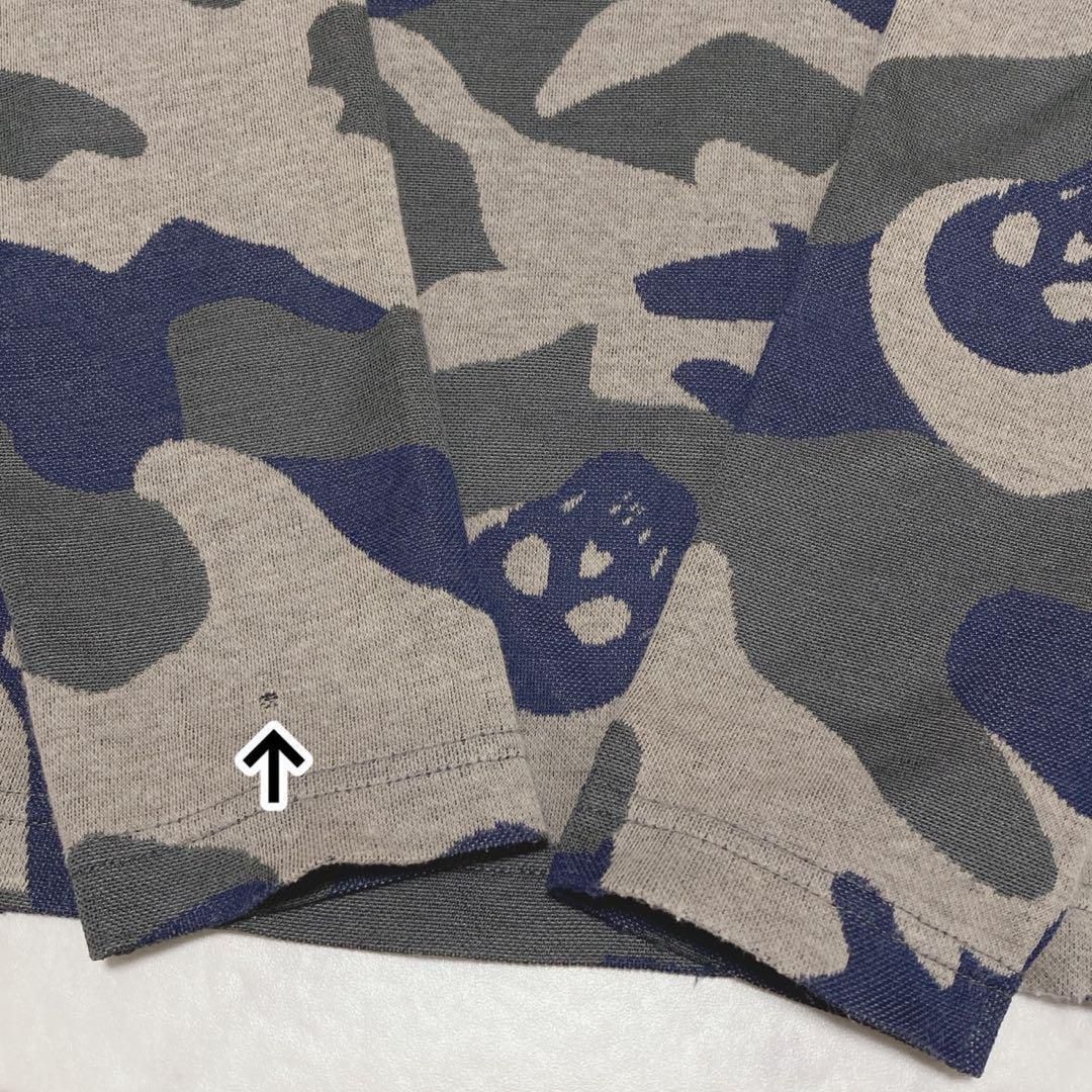 フロント右側ほつれ、右袖小穴あり。