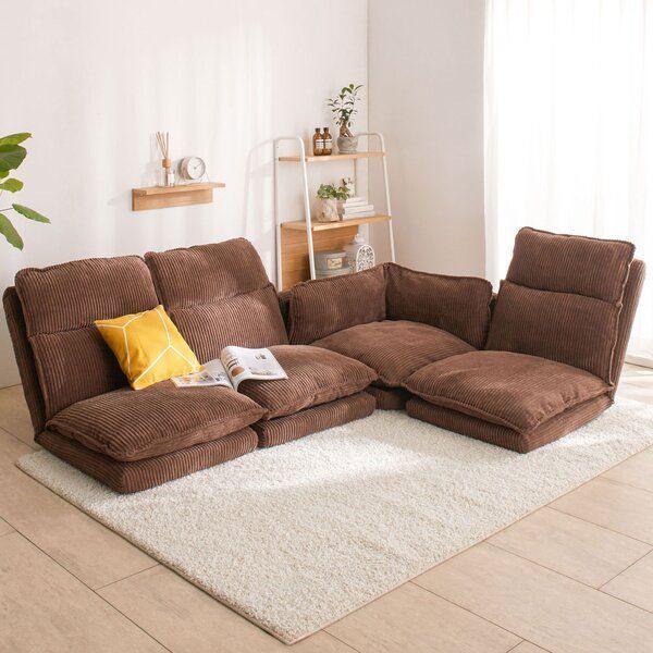 【ポイント14倍!12/5限定】 リクライニングフロアコーナーソファ コーデュロイブラウン CDBR