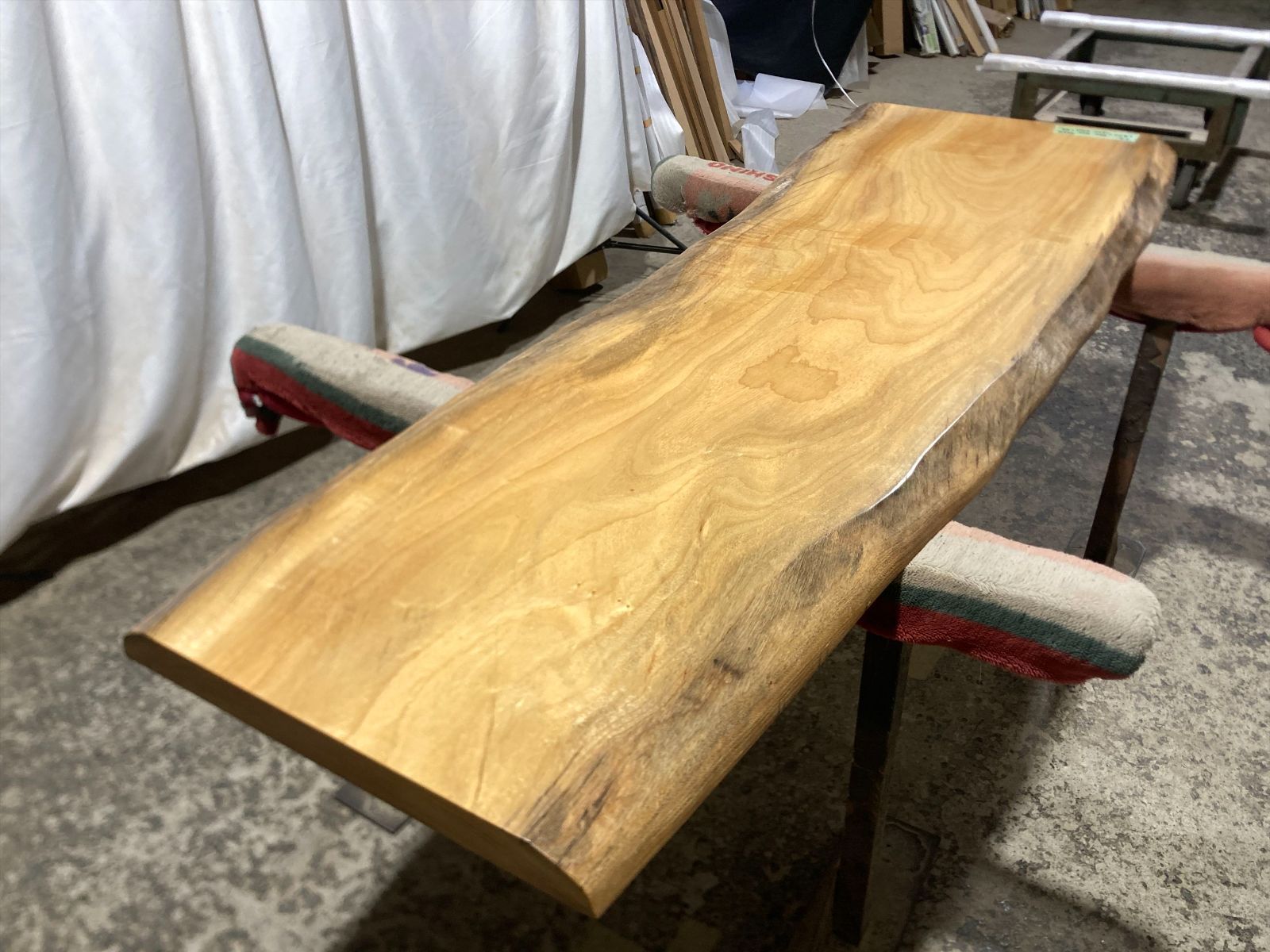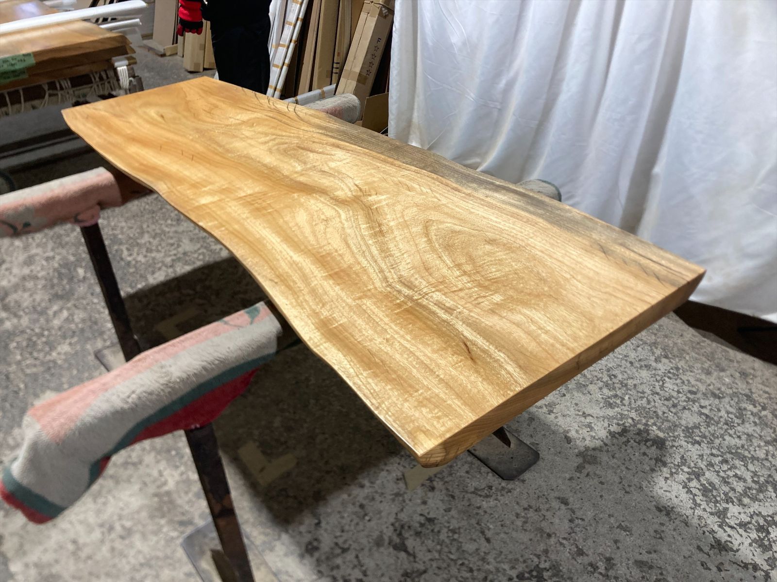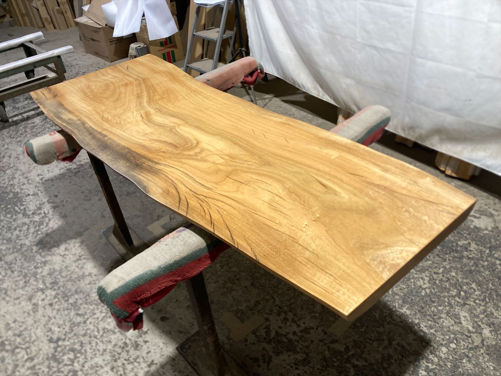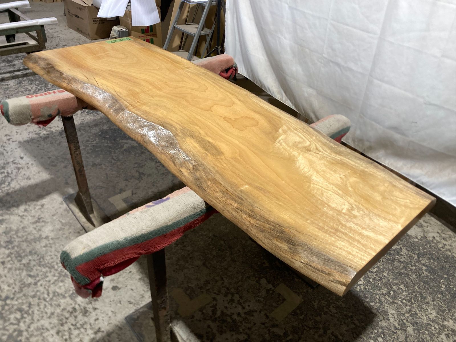 クス無垢乾燥材 サイズは1800x550-400x47mmになります。 もう一方の面は1800x630-490x47mmになります。 サンダー処理の後、ウレタン塗料の割れ止め剤をスプレーガンにて塗装しております。 完全仕上げ塗装ではありませんがそのままでもご使用になれます。 ご入金から3週間ほどお時間いただけますと追い金20000円にてウレタン艶消し両面完全仕上げにてご提供できます。 追い銭30000円ほどいただけますとウレタン塗装よりも耐久性の高い両面艶消しセラウッド塗装にてのご提供もできます ウレタン艶消し完全仕上げですと現状の状態よりも塗料の硬度がありますので擦り傷が付きにくく仕上がりもさらに良くなります。 セラウッド仕上げですとセラミック配合の塗料となりますのでさらに擦り傷がつきにくくUVカット効果もありますので木の焼けの進行が少なくて済みます。また鍋等を置いた際に焦げ跡も着きにくくなります。 メーカーであるサンユーペイントさんのセラウッド塗装で検索いただければ詳細が見れます。 楠は古くは仏像を作るために用いた木材として重宝されてきました。 その防虫性や防朽性は高く評価され、家具材としても使われてきた歴史があります。 昨今は海外の大径木の値上がりや国単位の輸出禁止措置等で日本輸入の減少に伴い 幅広の一枚板が取れる原木でまだ値段が届く楠の人気が非常に高くなっております。 この機会にいかがでしょうか。 写真に写っている脚は付属しませんのでご注意ください。 徳島県から個人宅様はアートセッティングデリバリーにて2人で発送予定です。