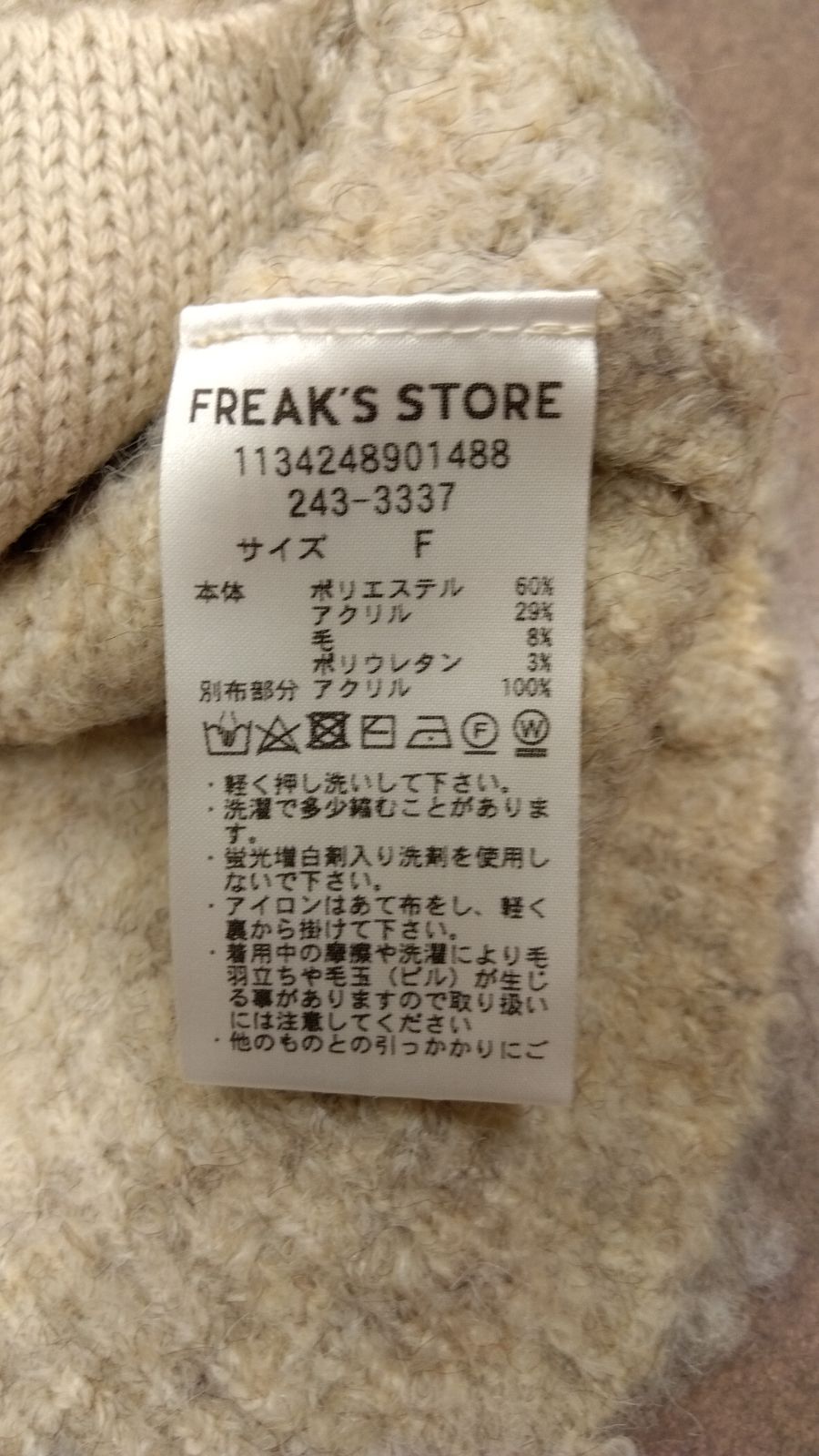 M1【新品未使用品】フリークスストア FREAKS STORE ニット カーディガン おすすめ あったかい FREESIZE 大きめサイズ ゆったりサイズ
