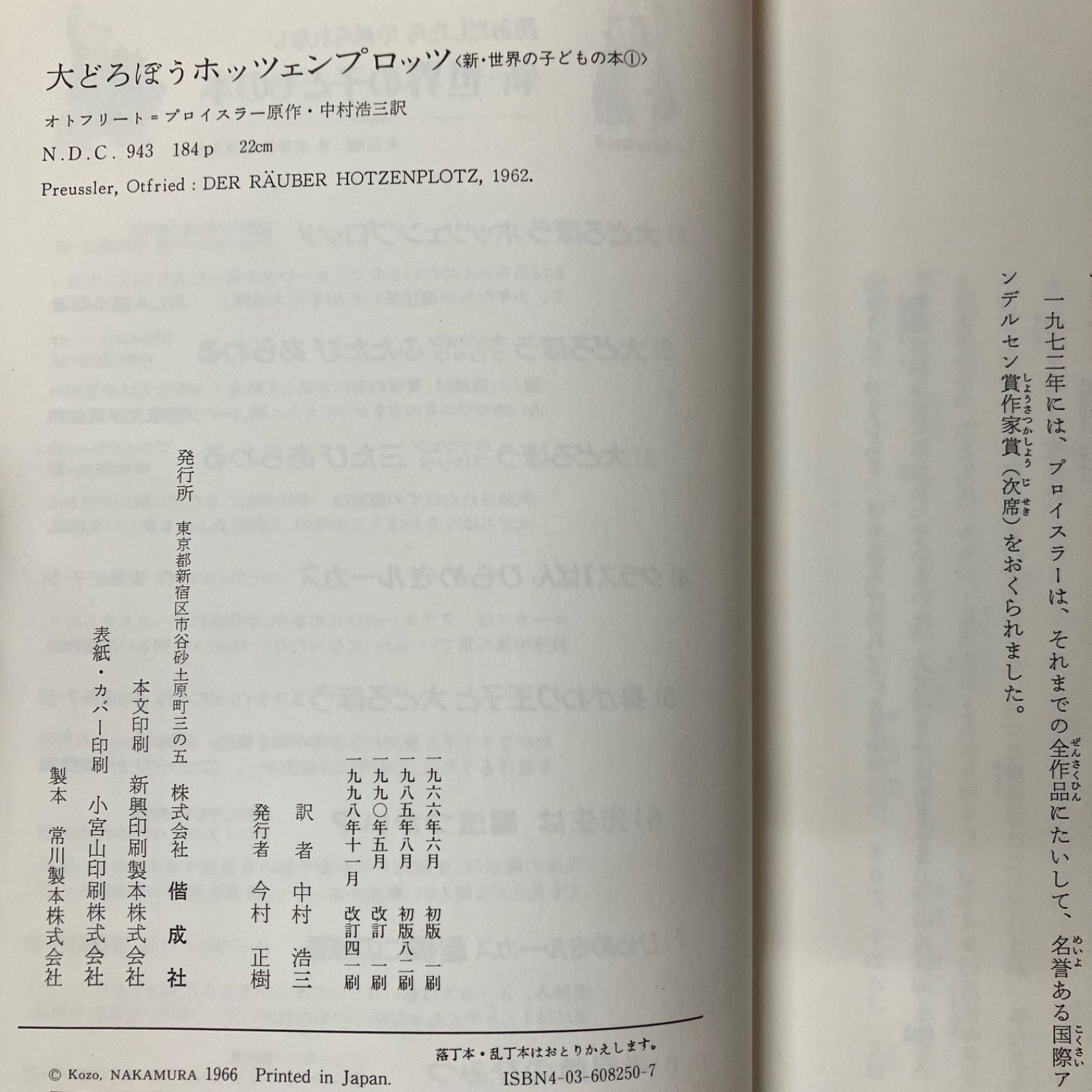 いらっしゃいませ。 商品ページをご覧いただきありがとうございます。 - 大どろぼうホッツェンプロッツ 著 者:プロイスラー  出版社:偕成社 サイズ:単行本 状 態:カバー欠品しています。     天にシミ スタッフが1点1点丁寧に検品クリーニングしております。 中古商品のため、キズや汚れが見受けられる場合がございます。 いずれもご使用には支障のない程度ですが、あらかじめご了承いただけますと幸いです。 状態につきましては、できる限り写真や説明文にてご案内しておりますので、ご確認のうえご検討ください 未定(出品者が手配)は「ゆうメール/クリックポスト/レターパック」のいずれかで発送します。 配送方法の指定は出来かねますので予めご了承ください。 商品をお客様に安全にお届けするために、ご注文の際は改めて配送先住所の確認をお願いします。 - 販売している古本は、皆様からの善意で寄せられたものです。 この商品は、象と花のパートナーとしてご参加いただいている下記の企業・団体や地域の方々から届けられました。 盛岡信用金庫/UniLife(ジェイ・エス・ビー)/第一生命/川徳/NTT東日本/信幸プロテック/JTB/岩手ダイハツ/クロステラス盛岡/リコージャパン/みずほ銀行/損保ジャパン/岩手日報社/盛岡大学/盛岡第一高等学校/大船渡高等学校/北上翔南高等学校/盛岡書房 購入していただくことで商品代金の「10%」が、病気とたたかう子供たちへ贈られる「本の購入費」となります。 本の循環を通して、読書の普及と子供たちの成長を支えることを目的として販売しています。 本を読むことが、あなたと子供たちの豊かな未来を育むことを信じて。 詳しくはショップ情報をご覧ください。 - 販売者 株式会社盛岡書房 古物商 岩手県公安委員会許可 第211010001283号